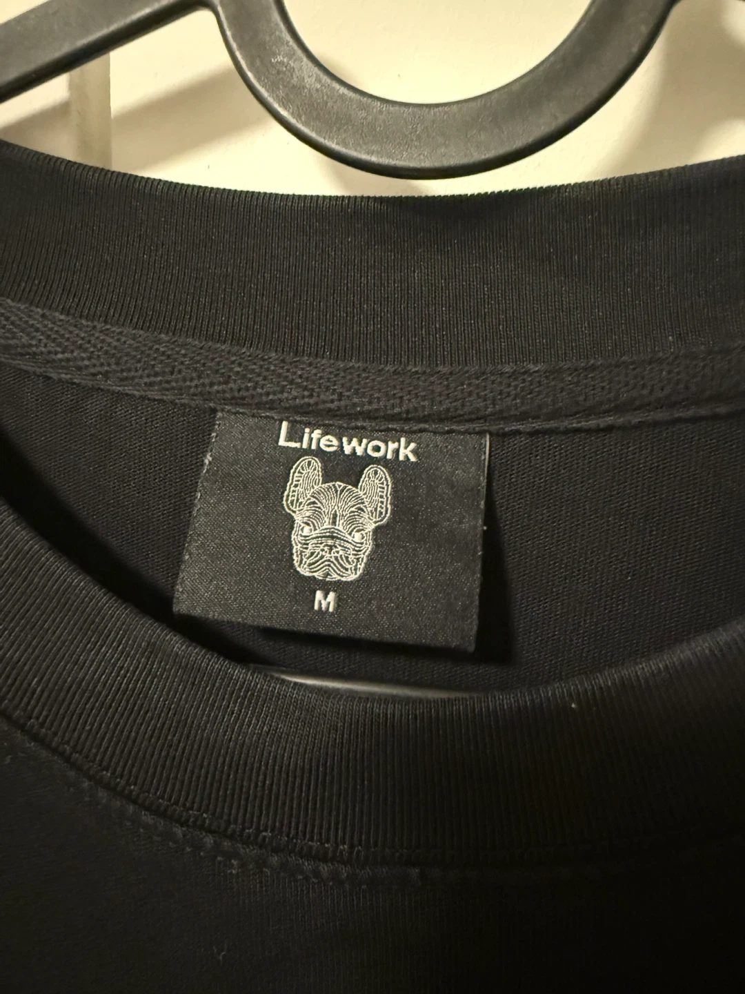 Selling a black Lifework t-shirt in size medium. It features a cool graphic design on the front. The material feels soft and comfortable, perfect for everyday wear