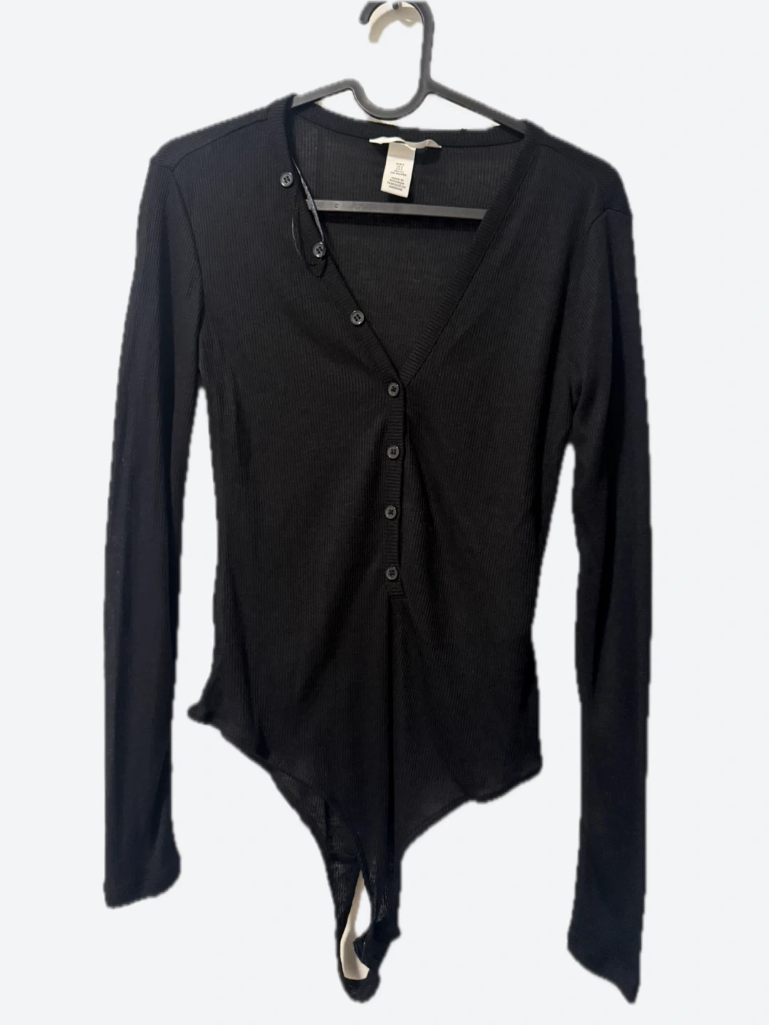 Selling a cute H&M black ribbed bodysuit in size small! It's in great condition and ready for a new home