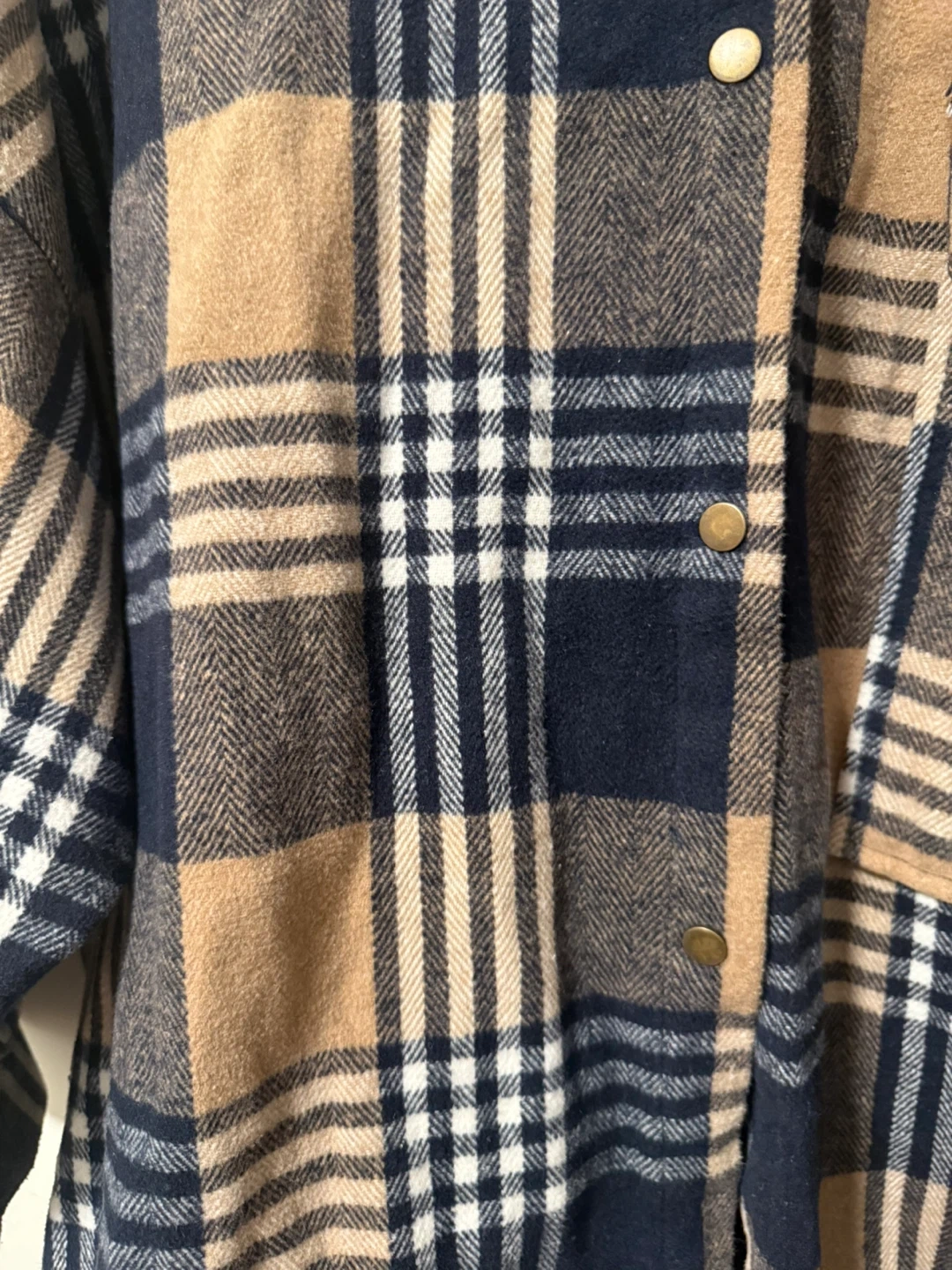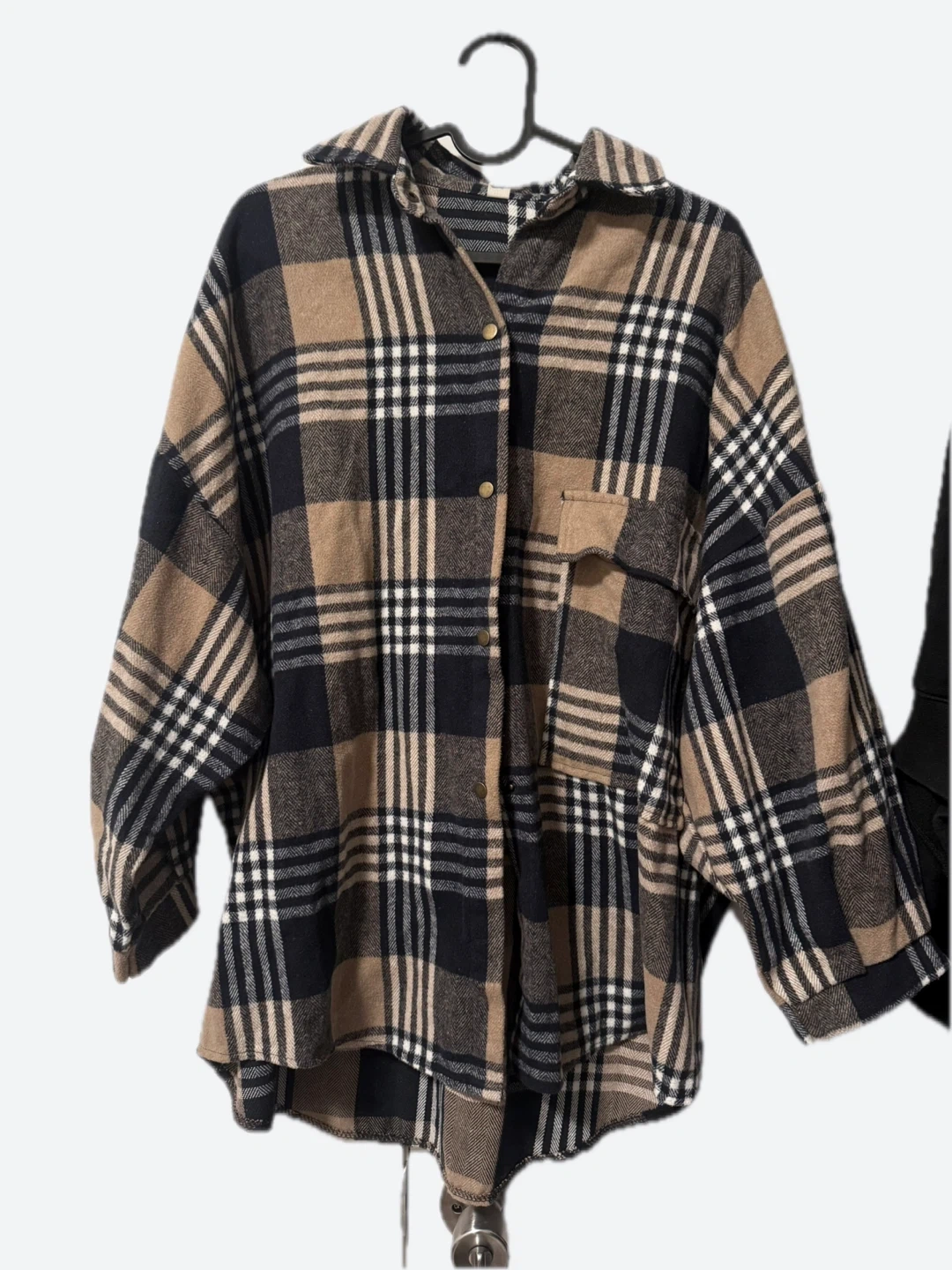 Cozy up in this stylish plaid flannel shirt jacket! It features an oversized fit, perfect for layering during the cooler months. The neutral colour palette makes it easy to pair with any outfit. Great for a casual and comfy look!