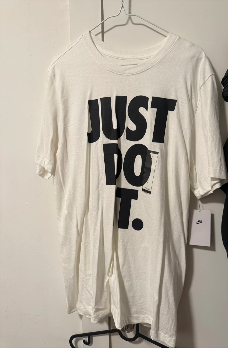 Selling a Nike 'Just Do It' T-shirt in size large! It's white with the classic black logo. Great for casual wear or workouts!