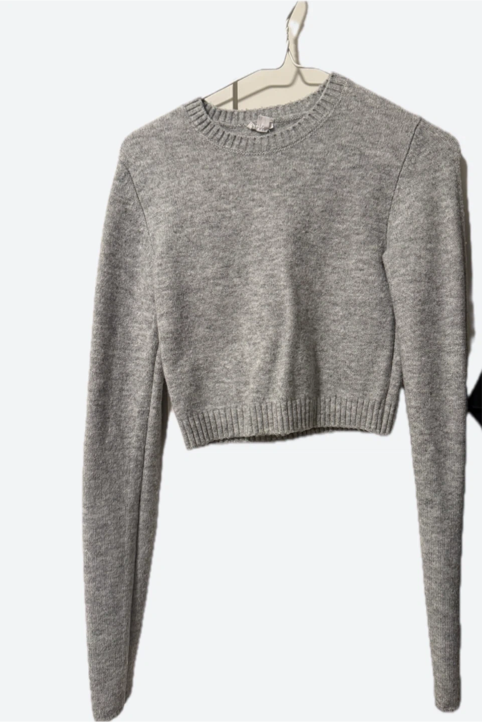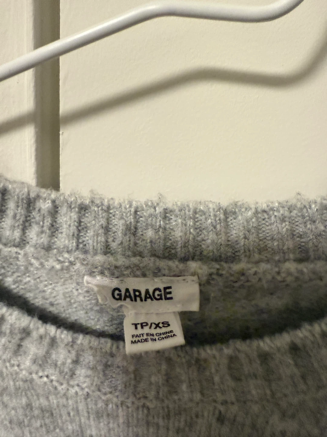 Selling a cute grey knit cropped sweater from Garage! It's in great condition and is a size XS. Perfect for layering or wearing on its own. The material is soft and cozy, making it a great addition to your wardrobe!