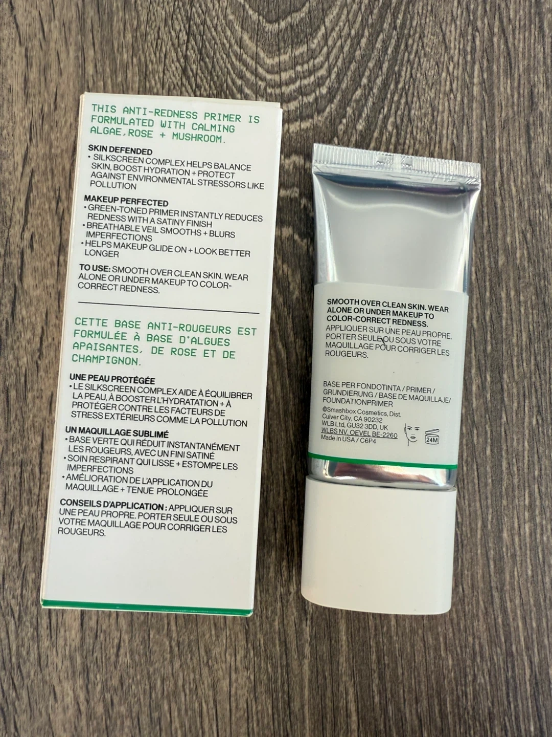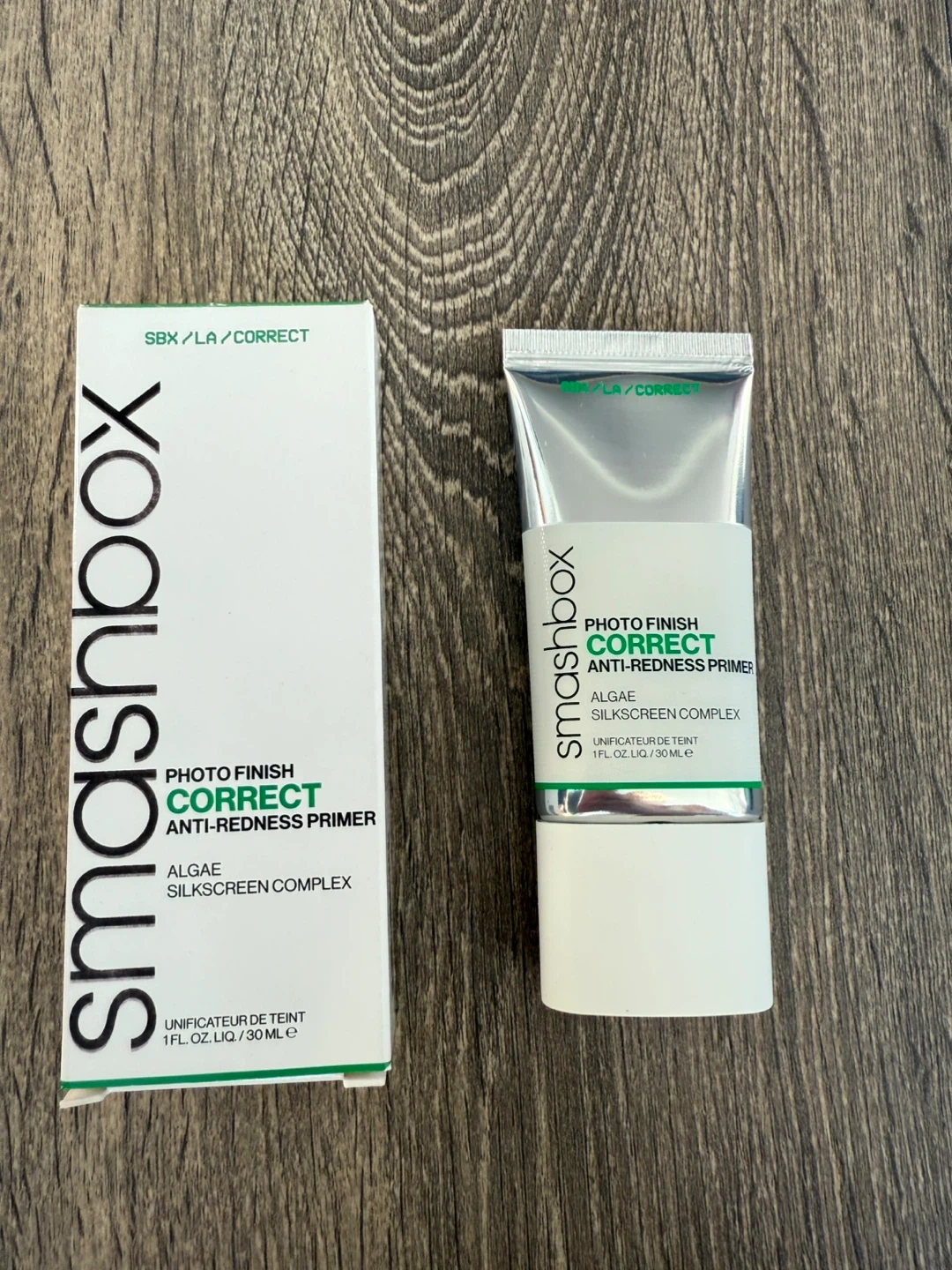 Selling a Smashbox Photo Finish Correct Anti-Redness Primer! This primer is formulated with calming algae, rose, and mushroom. It helps balance skin, protect from environmental stressors, and reduce redness with a satiny finish. It's also great for making makeup glide on and look better longer. The primer is 1 fl oz / 30 mL