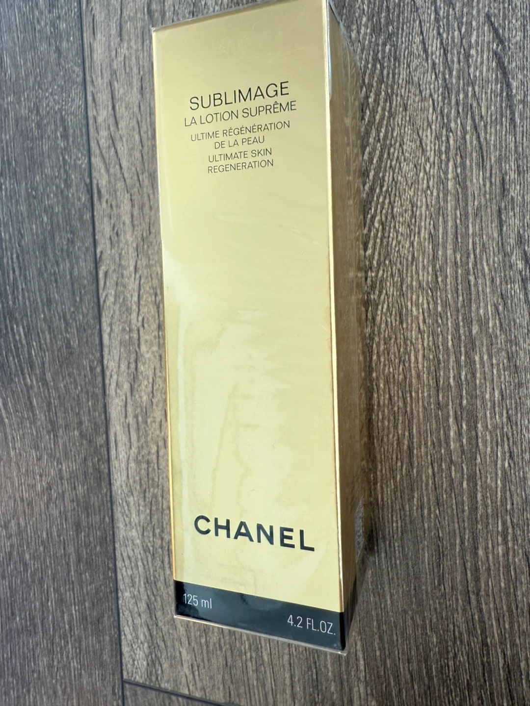 Selling a bottle of Chanel Sublimage La Lotion Suprême. This lotion is designed for ultimate skin regeneration, leaving your face feeling toned and radiant. It comes in a 125ml (4.2 fl. oz) bottle. Perfect for adding a touch of luxury to your skincare routine!