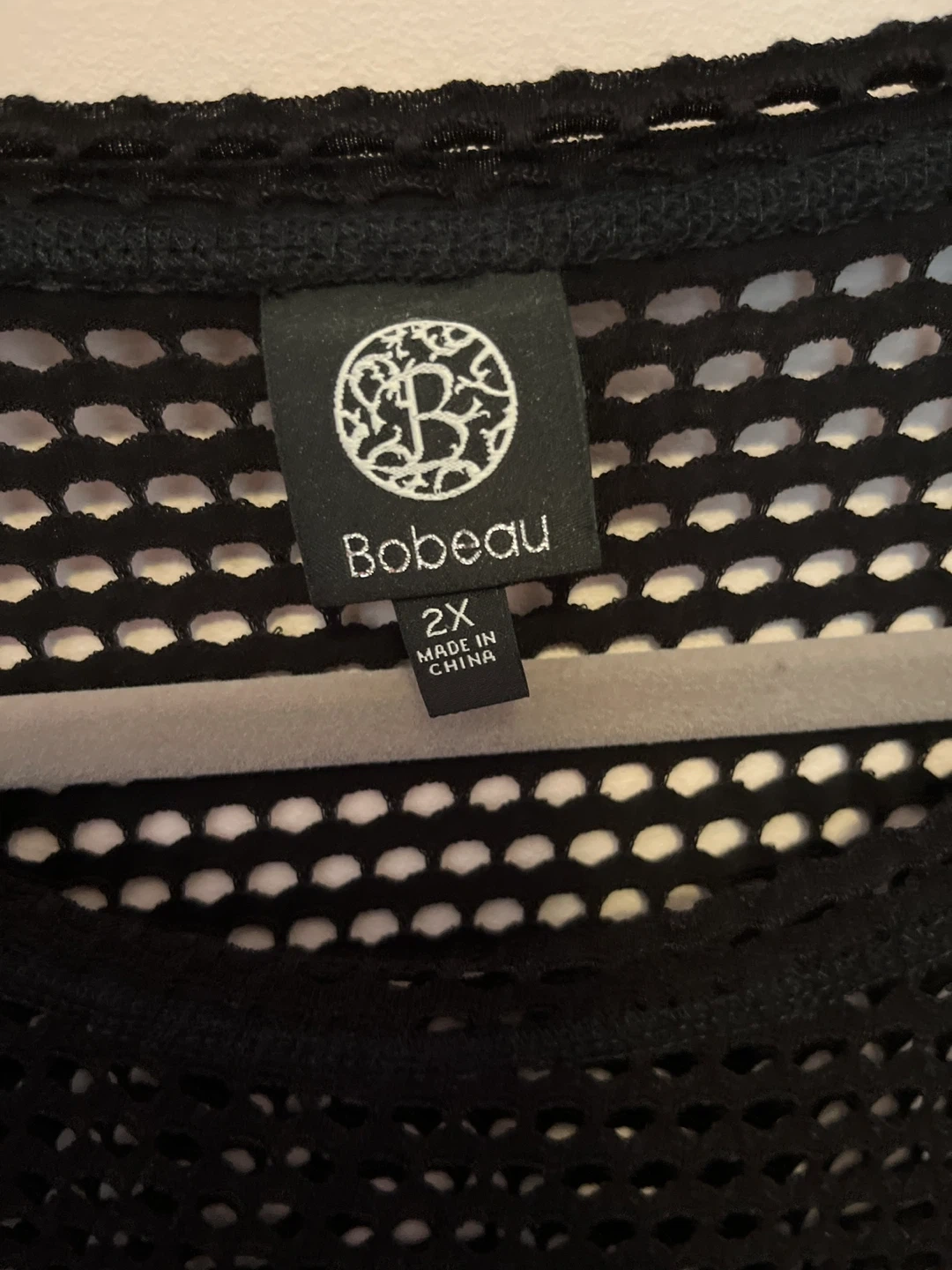 Selling a Bobeau black fishnet top in size 2X. It's in great condition and ready for a new home! This top is perfect for layering or making a bold statement. The fishnet design adds a trendy touch to any outfit