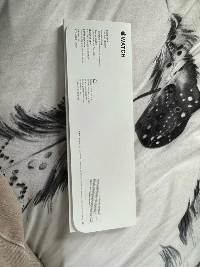 This is an authentic Apple Watch Sport Band in black, size M/L, designed for comfort and durability. Brand new. Never been worn. Perfect for upgrading your Apple Watch style!