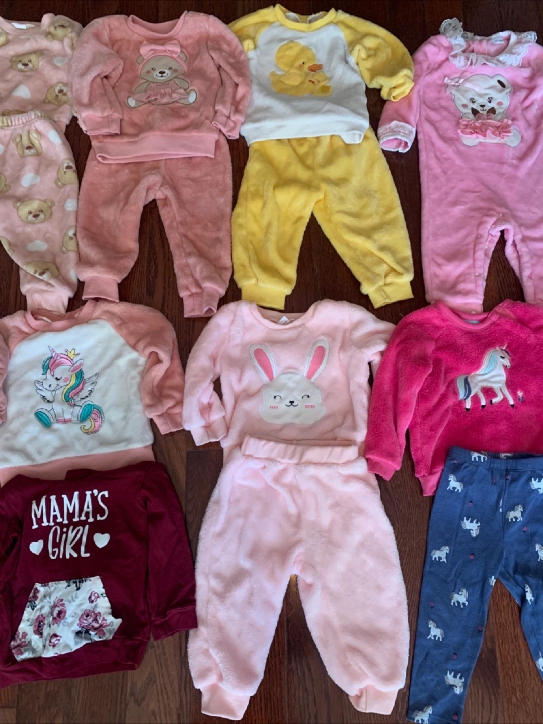 Selling a bundle of adorable baby girl clothes! Includes a variety of styles and colours. Perfect for mixing and matching or stocking up on essentials for your little one. Warm fleecy sets perfect for the winter. All items are in great condition and ready for a new home! Each set is $5 or take all for $45