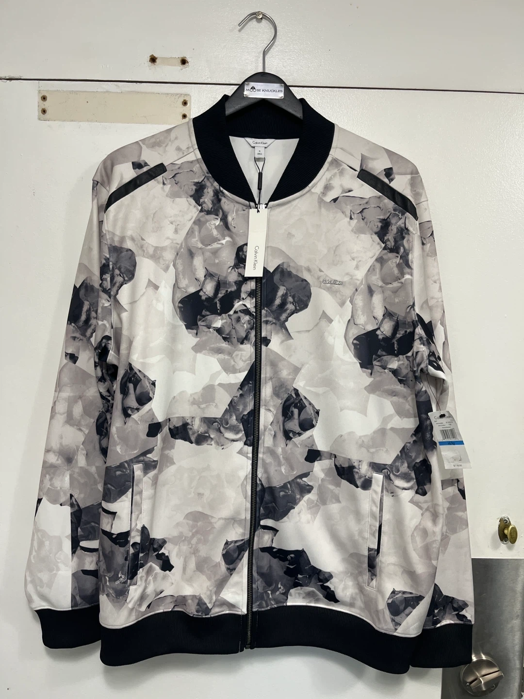 Here's a brand new Calvin Klein bomber jacket! It's a size XL/TG with a cool floral pattern. The original price was $118.00, so you're getting a great deal!