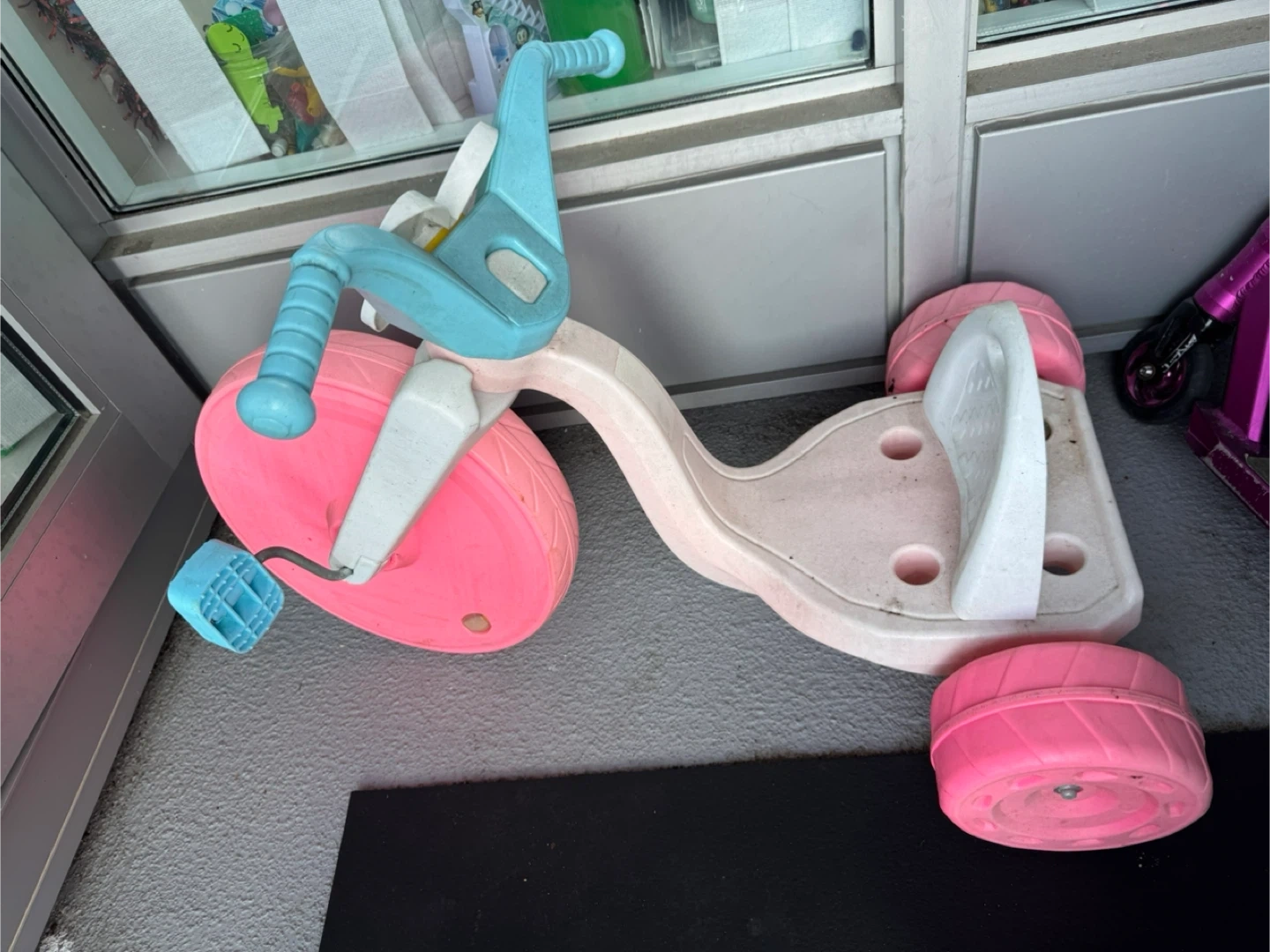 Selling a cute pink and blue tricycle! It's perfect for toddlers learning to ride. It has a sturdy design and is easy to manoeuvre. Great for some outdoor fun!