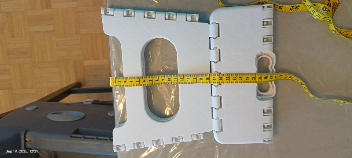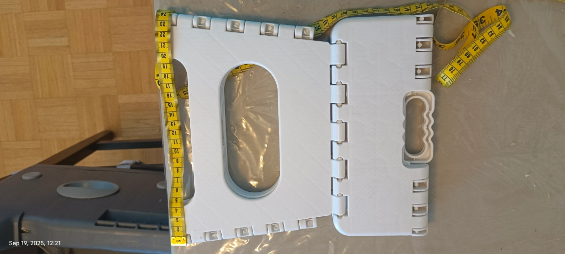 Here's a handy white folding step stool! It's lightweight and easy to store when not in use. The measurements are included in the photos.