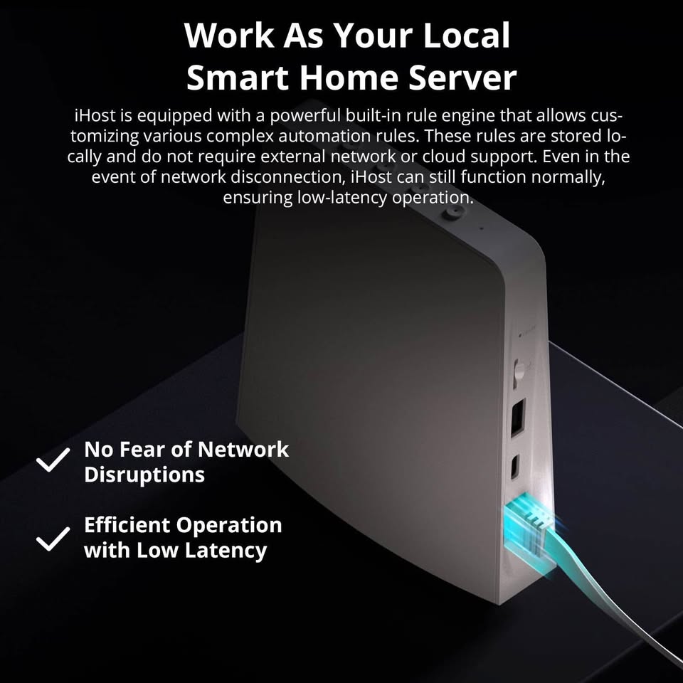 For example, you can set your lights to turn on when you enter a room or have your thermostat adjust to your preferred temperature before you arrive home. Furthermore, the iHost hub supports voice control through popular voice assistants like Alexa and Google Assistant. You can use voice commands to control your smart devices, making your smart home even more convenient and hands-free.