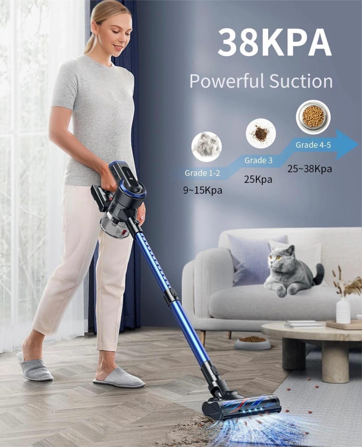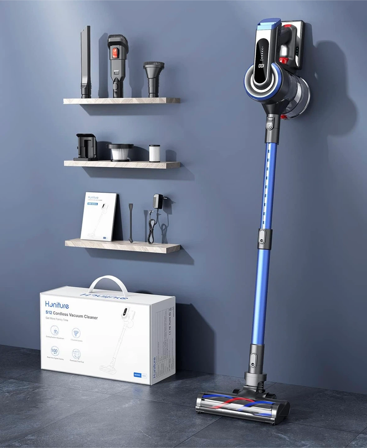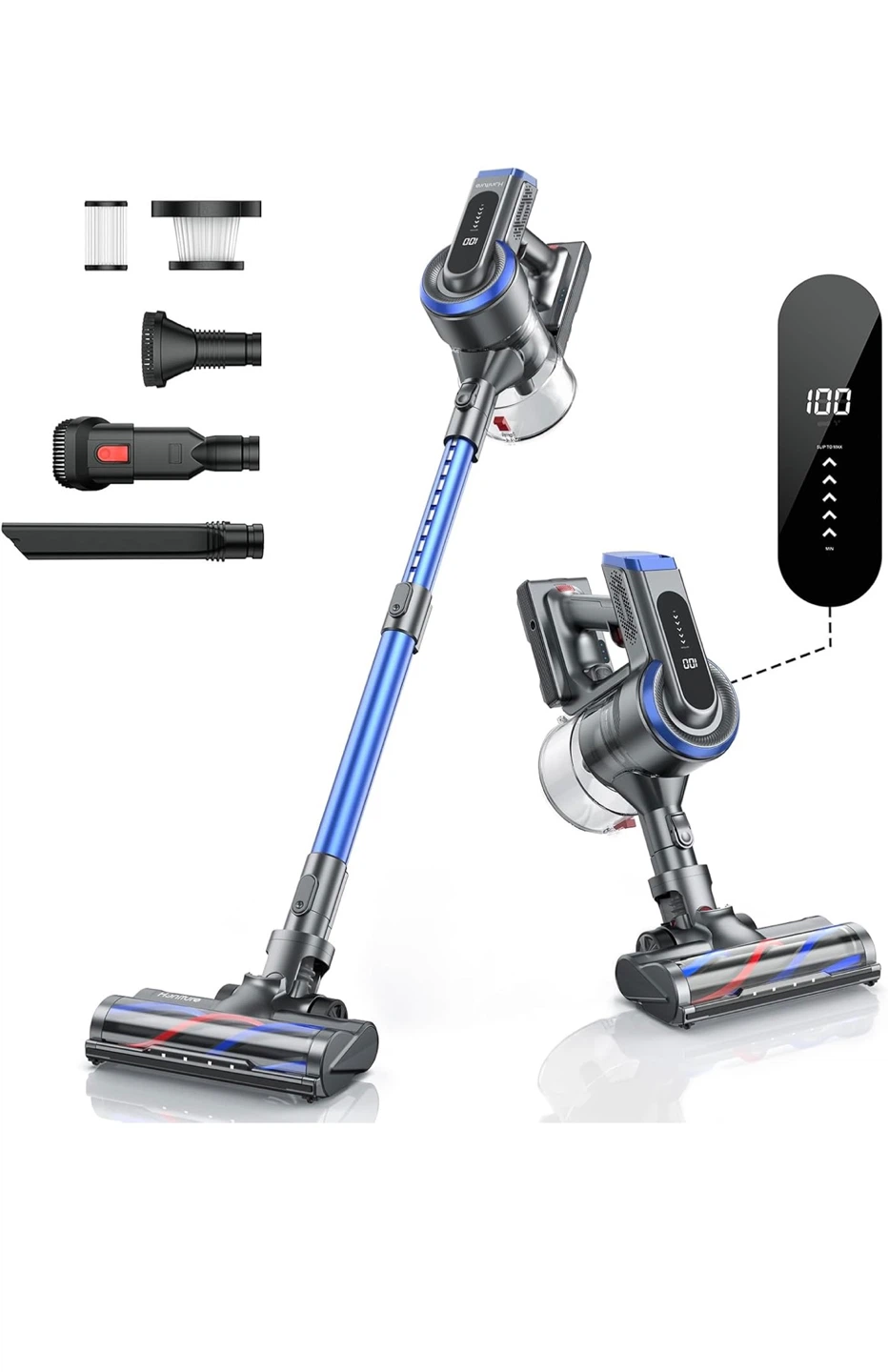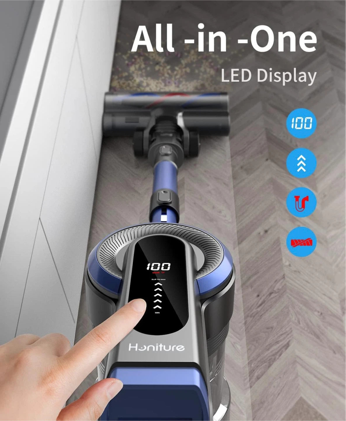 I'm selling a Honiture S12 Cordless Vacuum Cleaner. It features an upgraded floor brush that adapts to a variety of ground. It also has an all-in-one LED display. It has a powerful suction of 38KPA. Box with all attachments is included!