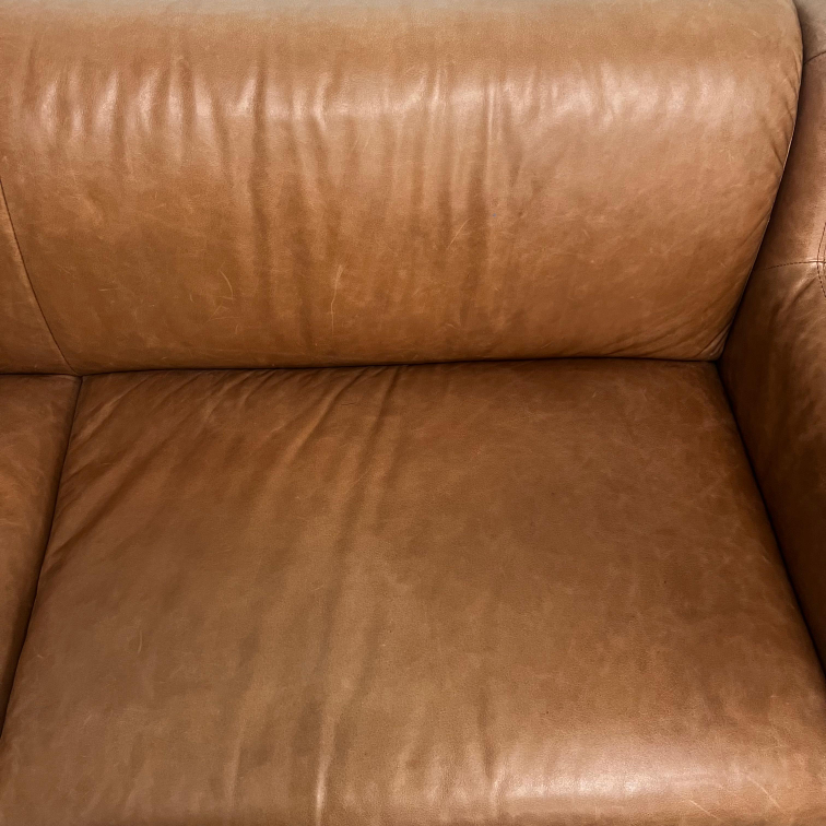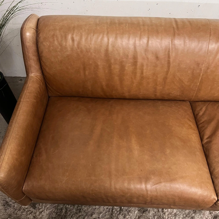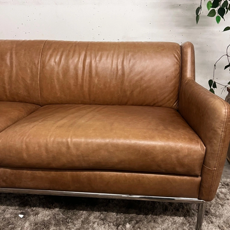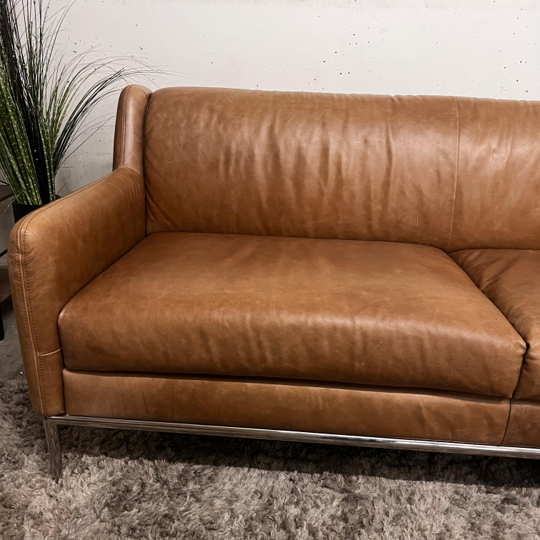 CB2 Cognac Leather Sofa. loveseat couch. Delivery