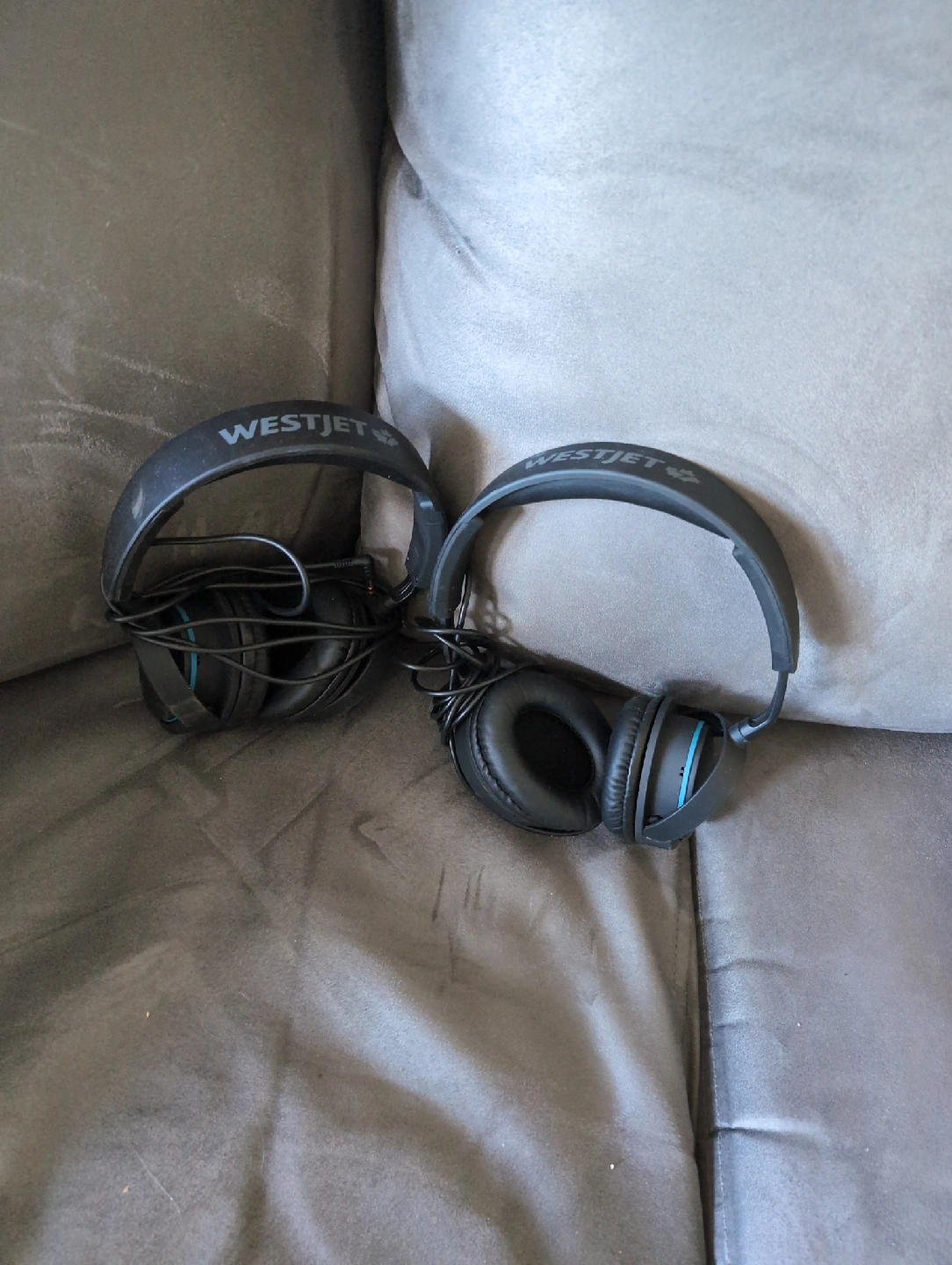 Selling a pair of WestJet headphones in black! They're in great shape and ready for a new home. Perfect for travel or just listening to your favourite tunes.