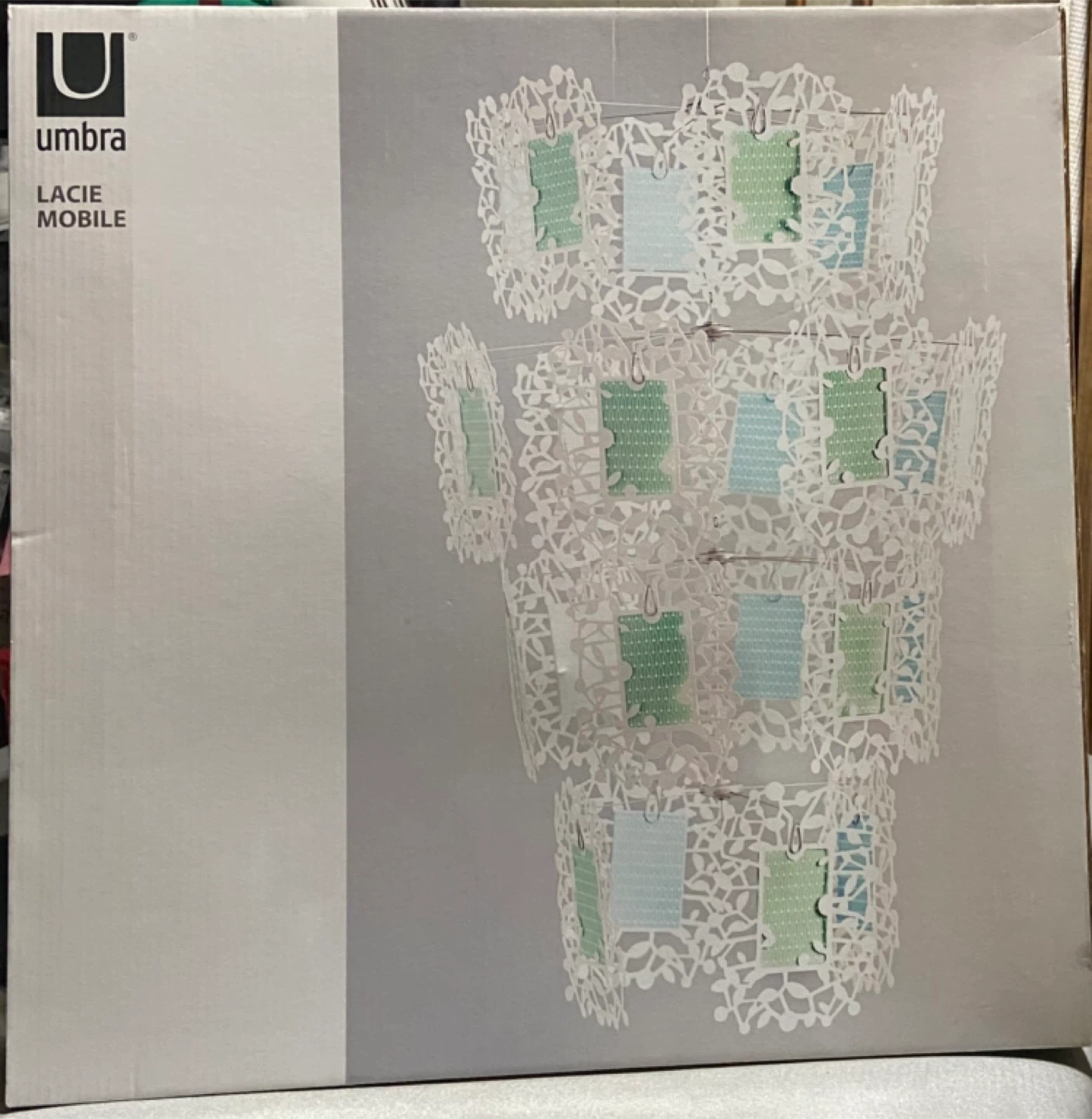 Selling a brand new Umbra Lacie Crib Mobile, still in its original packaging! This decorative mobile is perfect for adding a touch of whimsy to any room. It features delicate, lacy cutouts and is designed to hold photos or small keepsakes. The box is included, so it's ready to be set up and enjoyed!