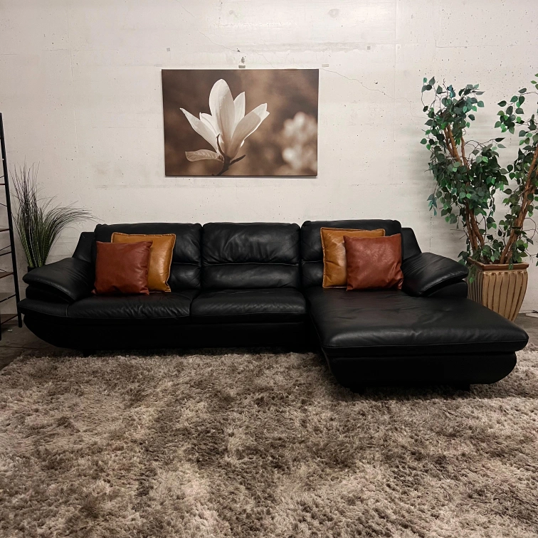 CJM black leather sectional