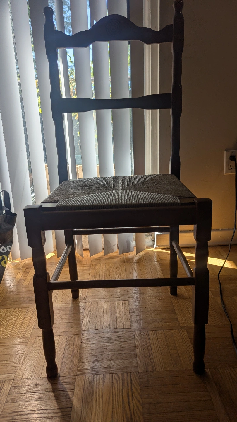 Selling a vintage chair with a woven seat. It's a sturdy piece with a unique design that would add character to any room. The chair is in good condition and ready for a new home. I have 8 available. Willing to negotiate if you take all.