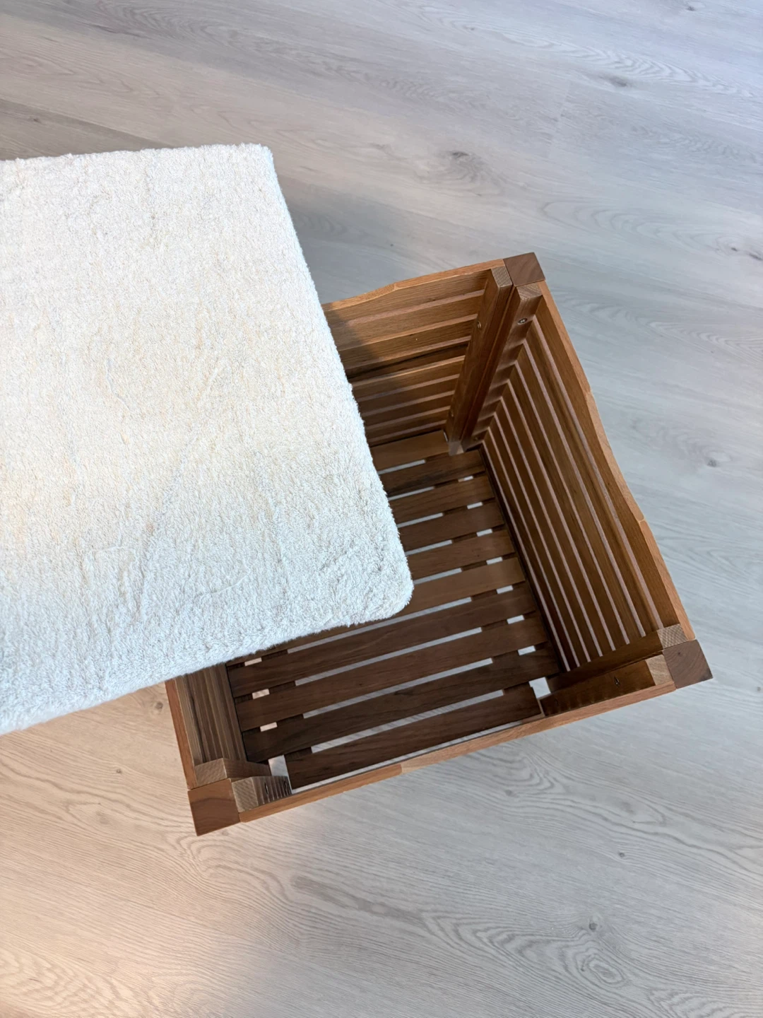 Wood Storage Ottoman with White Cushion