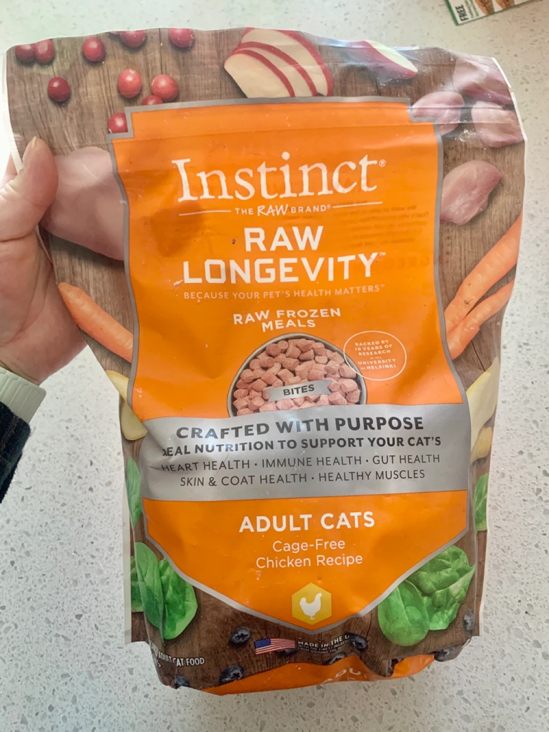 Instinct Raw Longevity cat food is crafted by pet nutrition scientists to help your cat live a longer, happier, healthier life. It's made with 95% real chicken, organs, and bone, plus 5% fruits, vegetables, and other wholesome ingredients. It's also made without corn, wheat, or other grains, legumes, artificial colors, or artificial preservatives