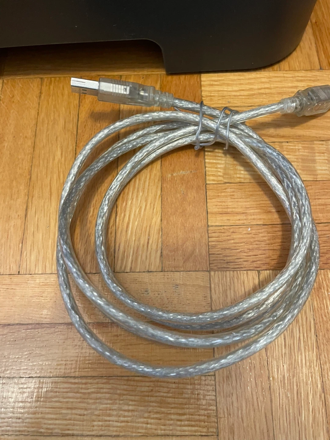 Includes cord to plug in the printer to the wall as well as the cord to connect to your computer/ device
