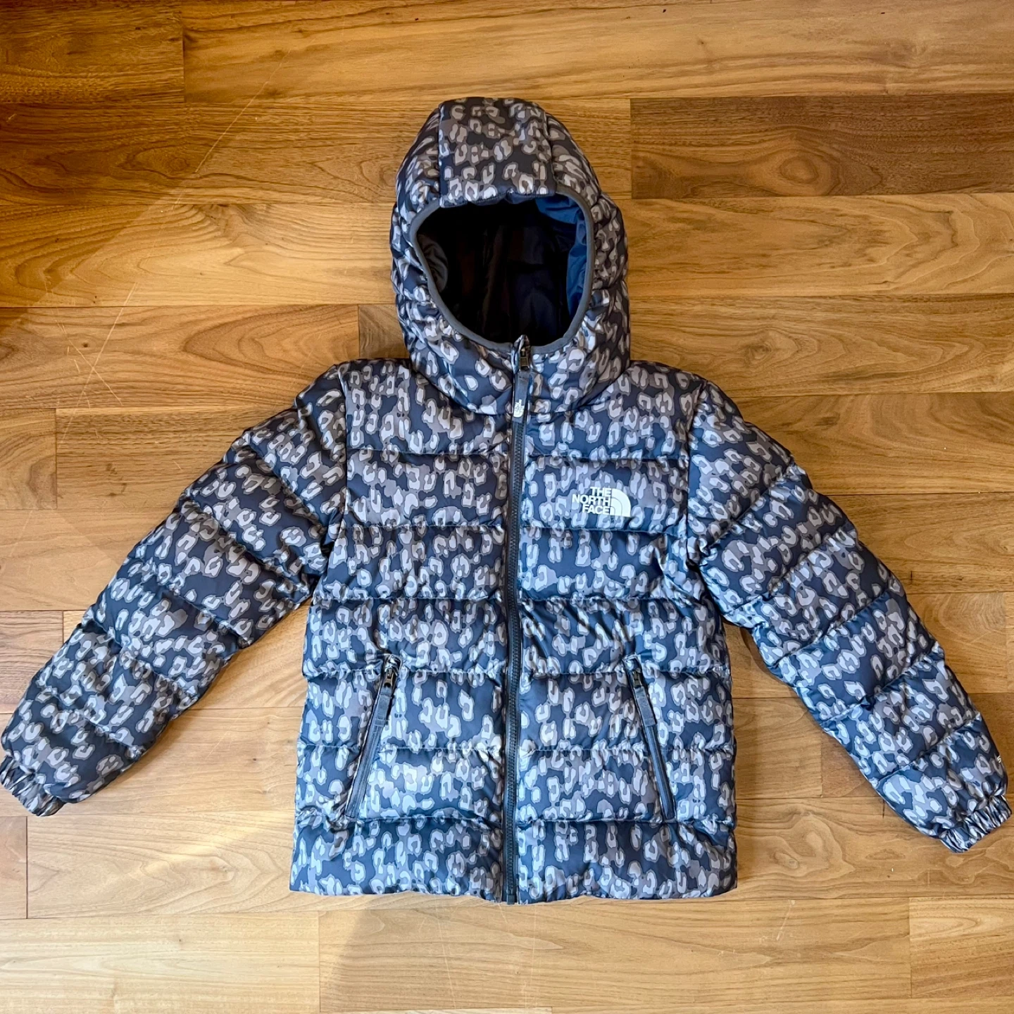 Like new condition! This reversible girls’ puffer jacket features a stylish print and is perfect for keeping your little one warm during the colder months. The jacket is in great condition and ready for a new home!