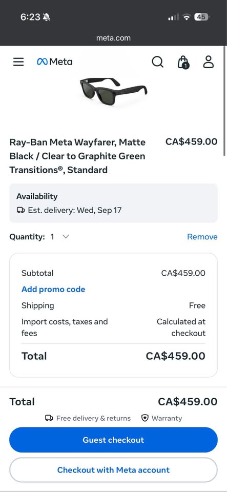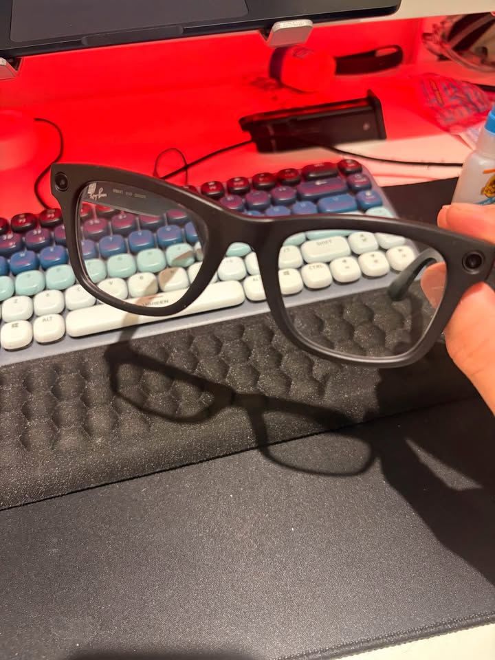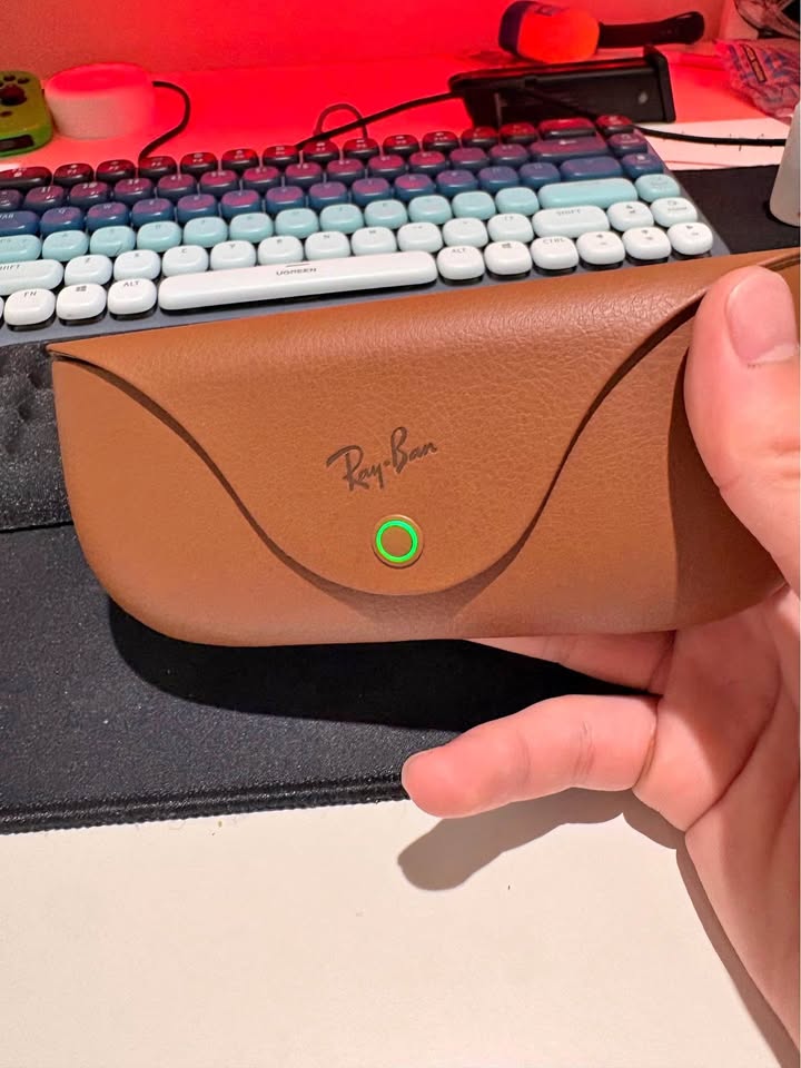 Selling my Ray-Ban Meta Wayfarers. not long ago, barely used, basically new. Lenses are the clear-to-graphite green transitions, super clean look. Battery and charging case all work perfect, no scratches on the frames or lenses. Comes with the original case.