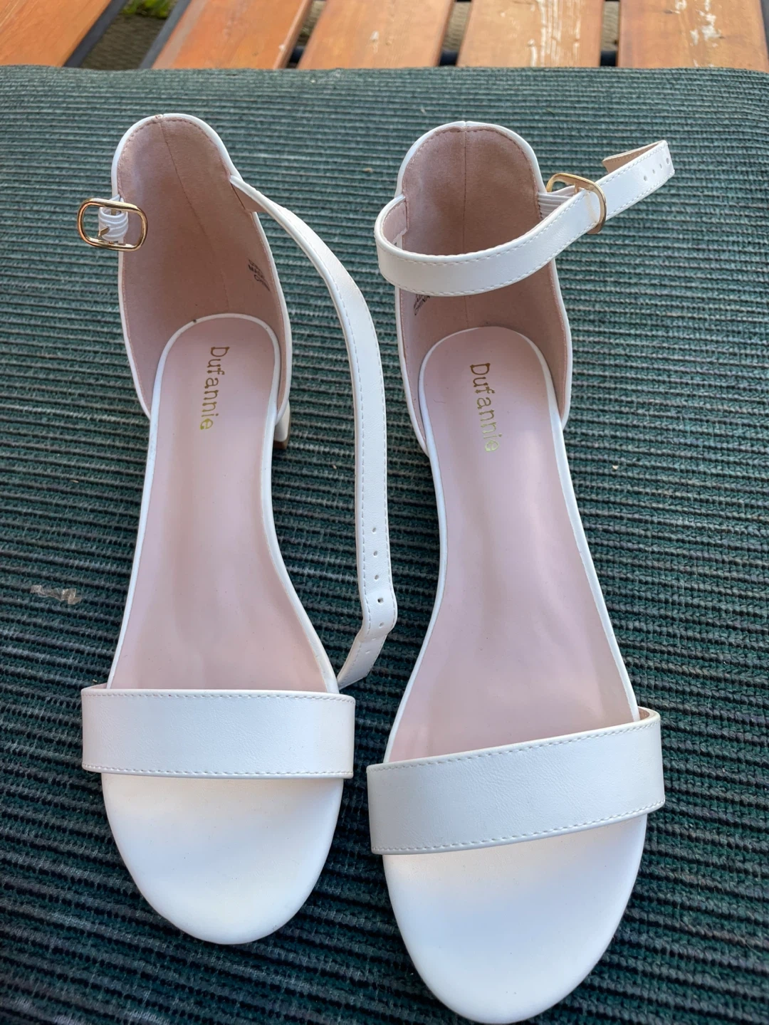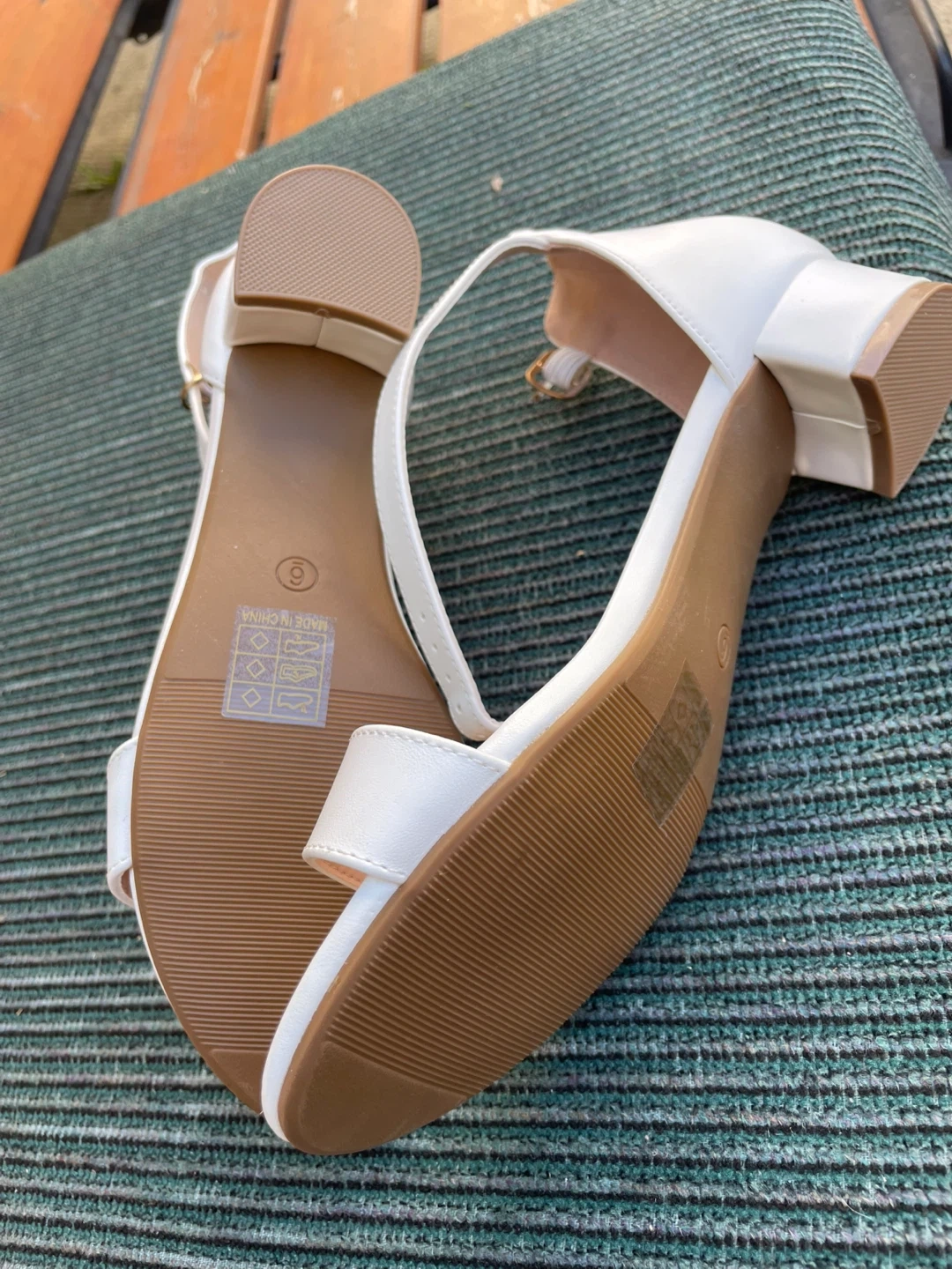 Selling a Brand New pair of white sandals in size 6. Perfect for dressing up or down, these sandals are a versatile addition to any wardrobe