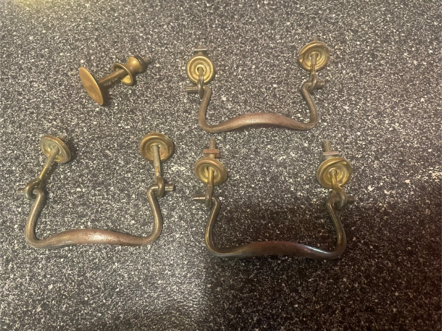 Selling a set of three vintage drawer pulls. They have a lovely aged look and would be perfect for a dresser or cabinet project. They show some signs of wear but are in good condition overall