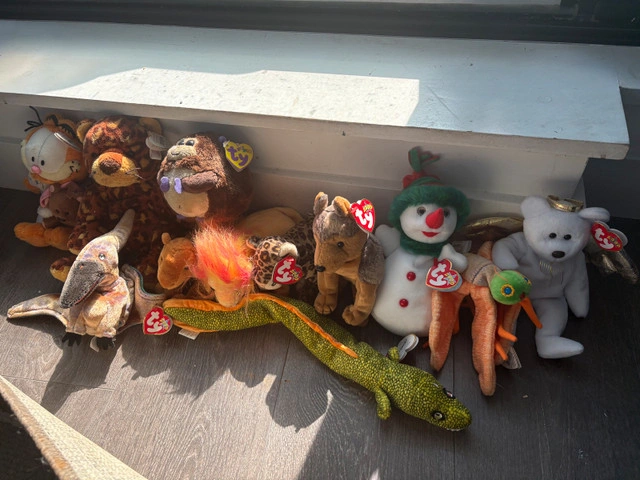 Selling a collection of over 80 Ty Beanie Babies, most with tags still attached! This charming assortment includes a mix of sizes: large, regular/original, and small. All items are used. Perfect for collectors or anyone looking to add a touch of nostalgia to their home. Each Beanie Baby has been carefully stored and is ready for a new home. Serious inquiries only, please. Get ready to welcome these adorable critters into your life!