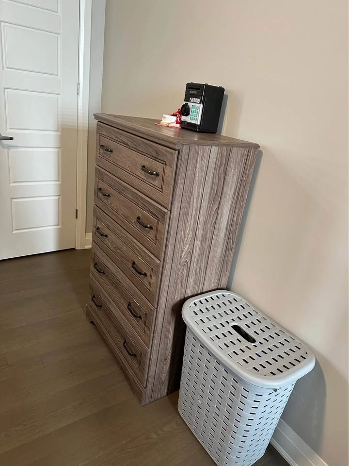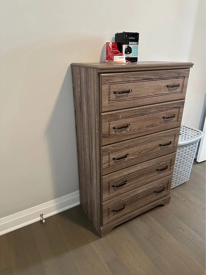 • 5-Drawer Chest – smooth-glide drawers with metal handles