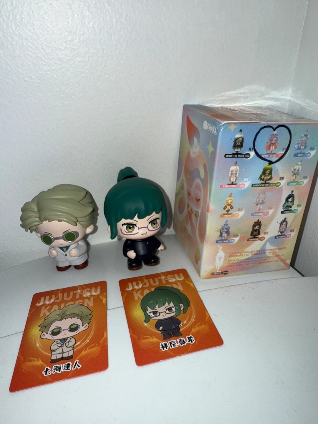 Selling two cute Jujutsu Kaisen ($20 bundle and Chaka ($15) blind box figures! They are in great condition and come with their original cards and box. Perfect for any fan of the series!