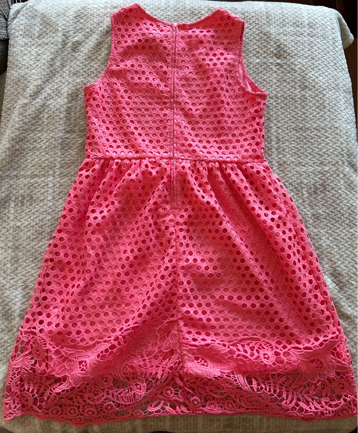 A beautiful pink lace dress, perfect for a special occasion or a sunny day out! It's in great condition and ready for a new home Size 16
