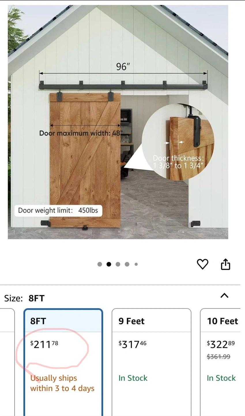 18Selling a brand new 8FT sliding barn door hardware kit! It's suitable for a variety of rooms, including warehouses, garages, living rooms, and tool sheds. It's heavy-duty, anti-corrosion, and slides smoothly. Originally ships for $211.78. Hardware only, door is not included.