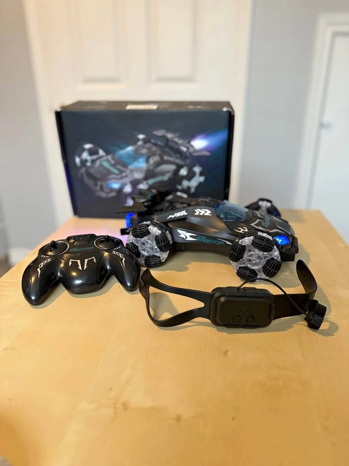 Pretty much new barely used, comes with 2 types of control, the standard remote and a wrist control to mirror you hands movement. Cool concept as well as have a fog button to leave smoke behind. Will need to fill small tank with water first.