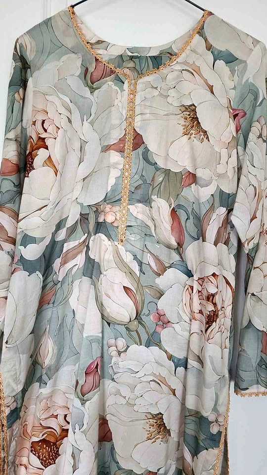 Brand new ladies printed 2 pc summer linen suit. Medium.