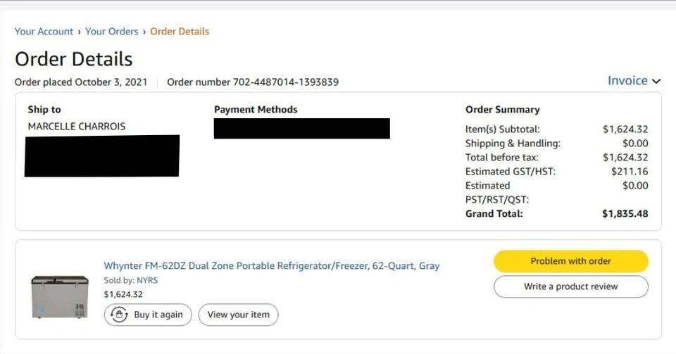Portable DualZone Fridge Freezer 62 Quarts (Both 110 and 12 Volt Plug Included) - can be all fridge or all freezer or half & half, set temp for each compartment. Whynter is one of top brands for high capacity camping RVing type fridge freezer, can hold 60+ cans. Like New. Dimensions: 28 inch wide X 19.75 inch high X 18 inch deep. Sells on Amazon for $1500+ (tax included). $500 OBO. Pick up Manor Park 10-minute drive East of downtown Ottawa. Address for pick up will be provided the day of pick up.