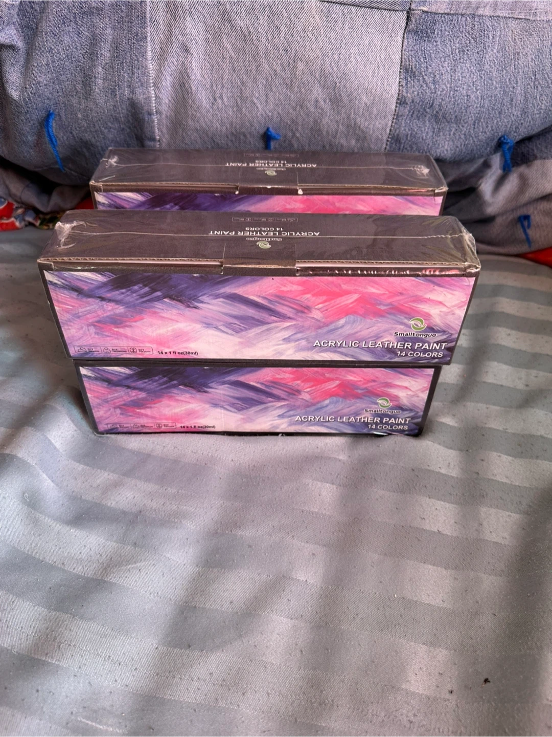 Selling a four sets of Smalltongue acrylic leather paint! This set includes 14 different colours and each bottle contains 14 x 1 fl oz (30ml). Perfect for your next leather project! Price is for each one
