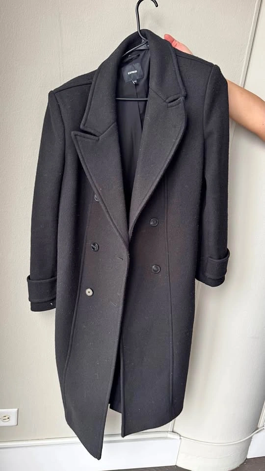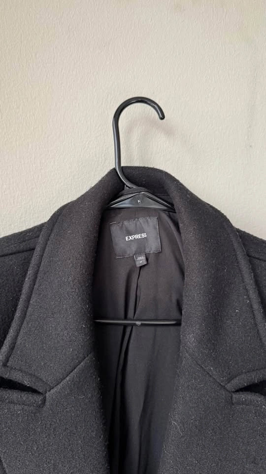 Selling an EXPRESS Women’s Black Long Wool Coat in great condition. Medium Size. Classic, elegant design perfect for staying warm and stylish in cooler weather.