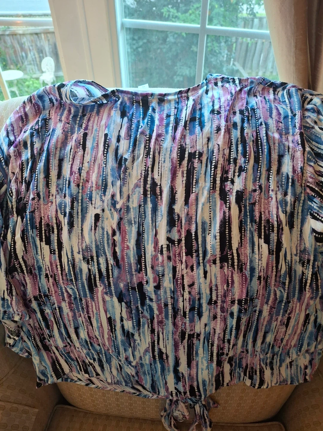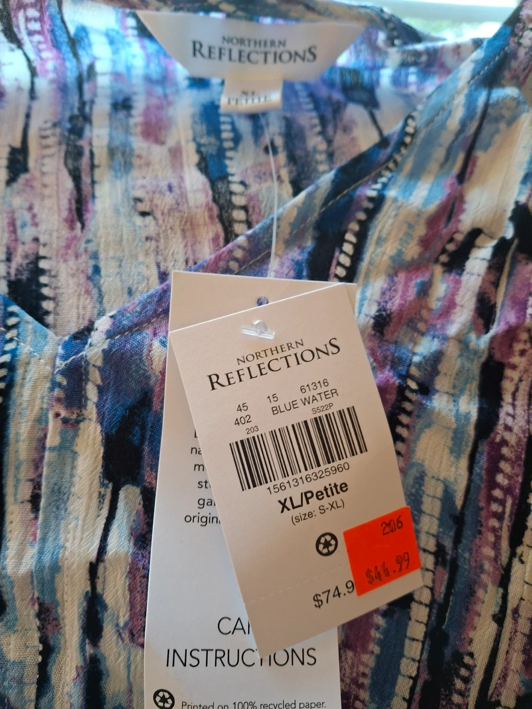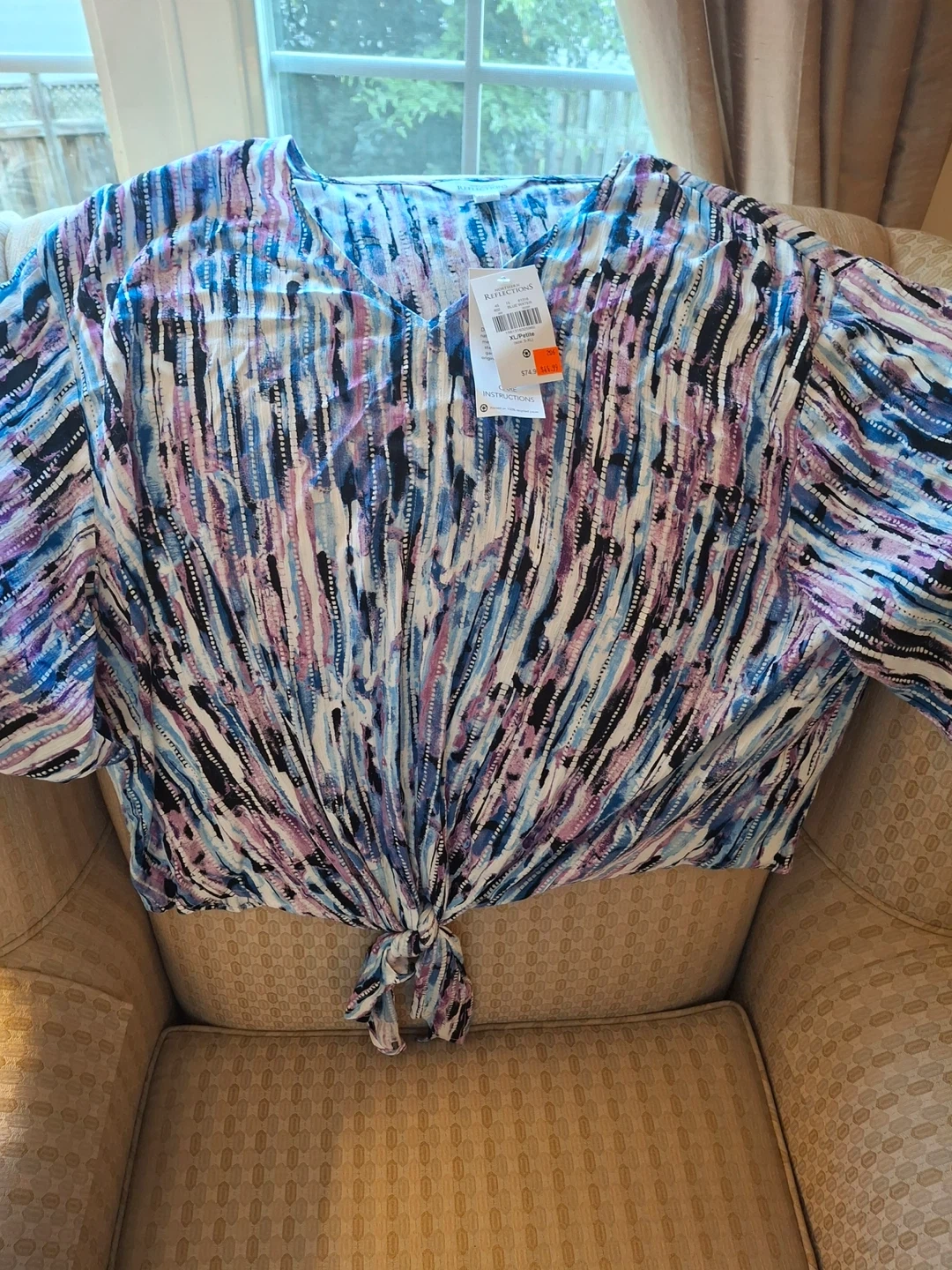 Northern Reflections top, brand new with original tags. XL/Petite. “Blue Water” colour - light blue, navy and rose tones. Available for pickup in Markland Wood.