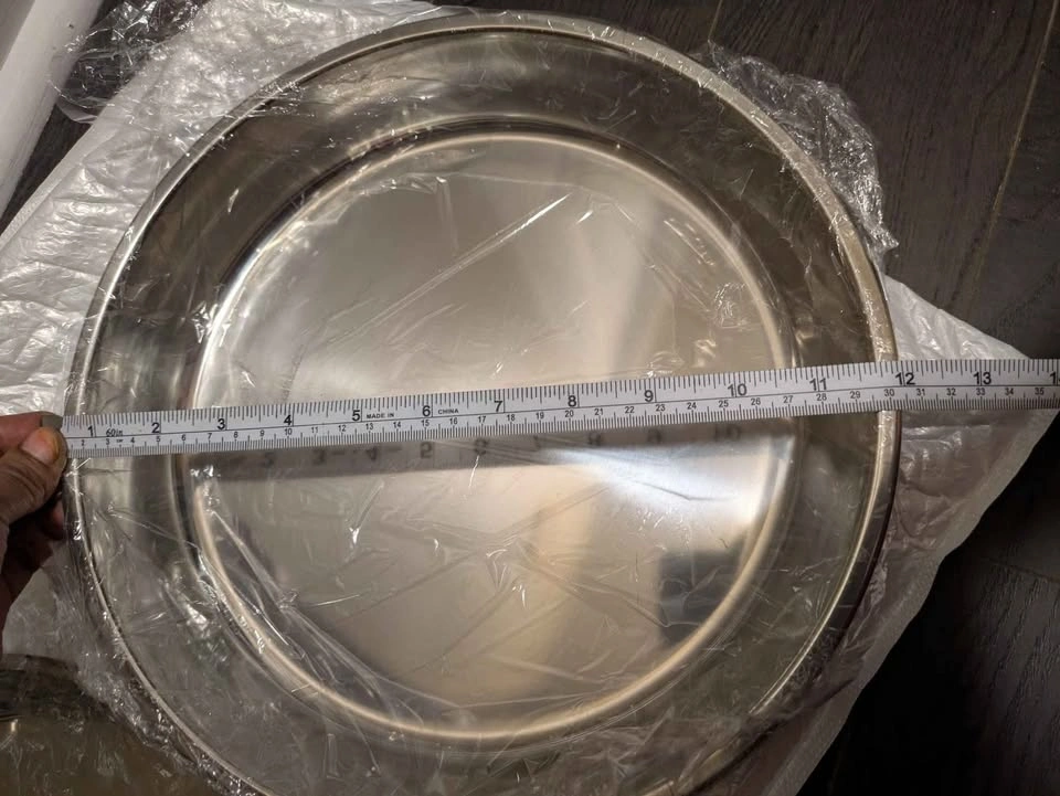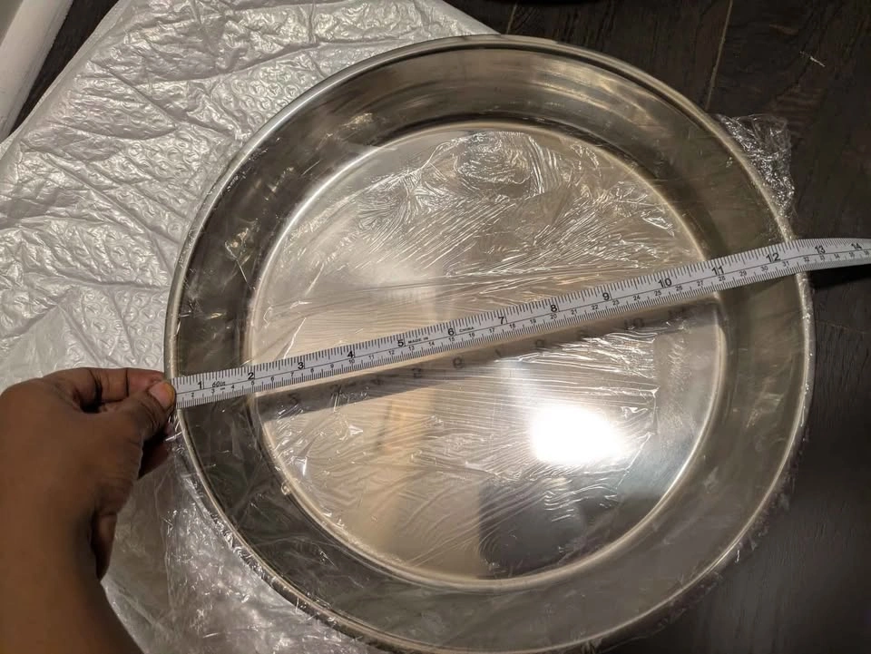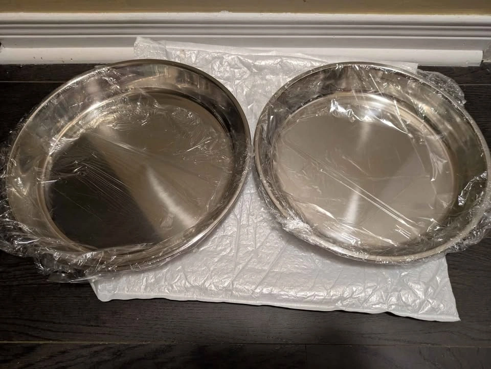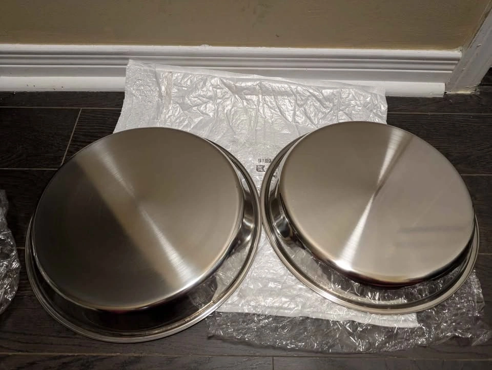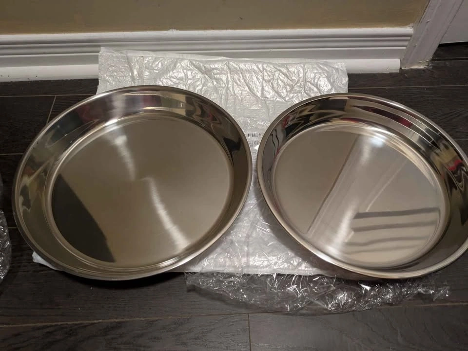 46Stainless Steel Baking Tray - Polished Round Pizza Pan, Cake & Steamed Dish for Home and Commercial Kitchens, Ideal for Camping and Outdoor Cooking, Dishwasher Safe, Oven Safe, Perfect for Serving Food, Food-Safe with Stainless Steel Material, Perfect for Room Decor Cash only no holds no refund Pick up near Erin Mills town center mall Please check out My other listings for new kitchen and household items Please serious buyers only message