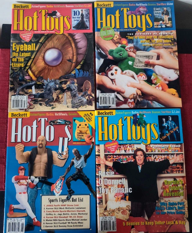 Vintage 1998-1999 Hot Toys Magazines All for $30 or $10 each #1- Rosie O'Donnell cover #2- Godzilla/ Eyeball on the latest lizard cover #3- Beanie babies cover #13 Stone cold, sports figures & Pikachu cover More Info: Pop Culture Collectibles