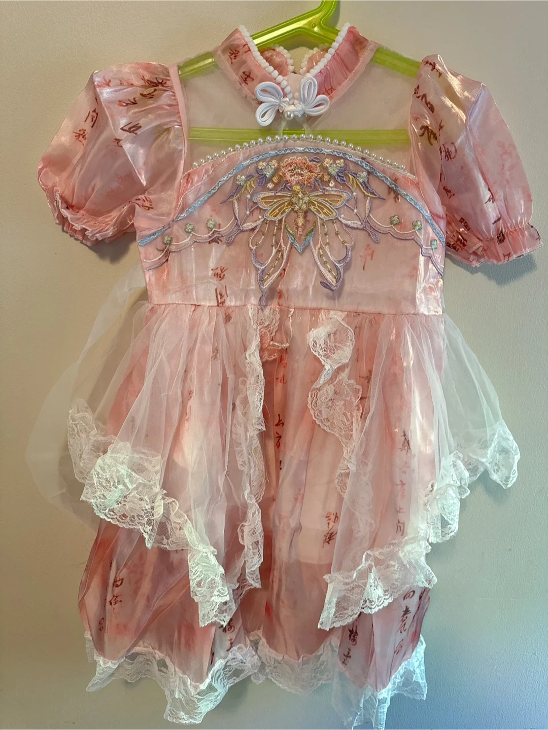 Pink Lolita Dress with Floral Embroidery Toddler 6-7T