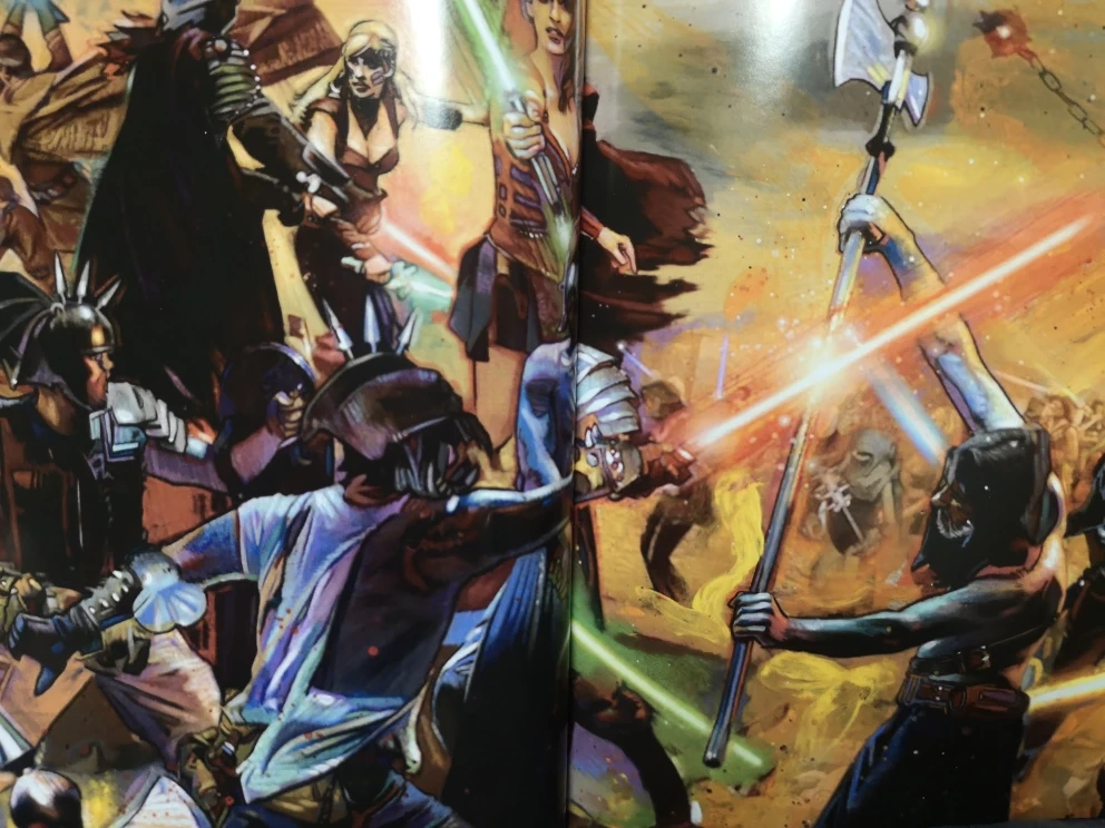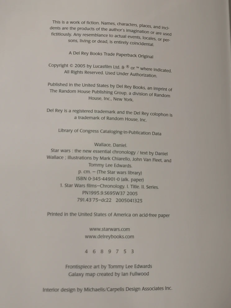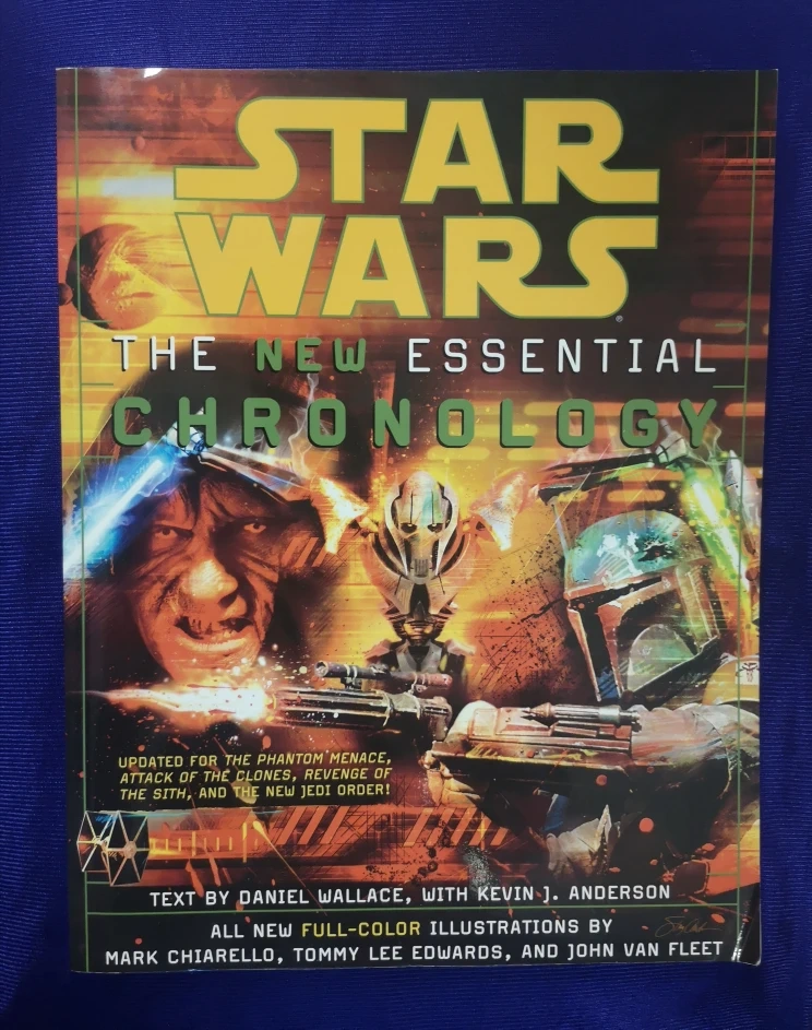 Essential Guide To Chronology - Paperback textbook - EU + movie - 2007 Lucasfilm - By Kevin J Anderson + Daniel Wallace - Captivating illustrations by Mark Chiarello, Tommy Lee Edwards + John Van Fleet - In-depth read about cannon chronology - Turning points, critical events, evolution of characters + More