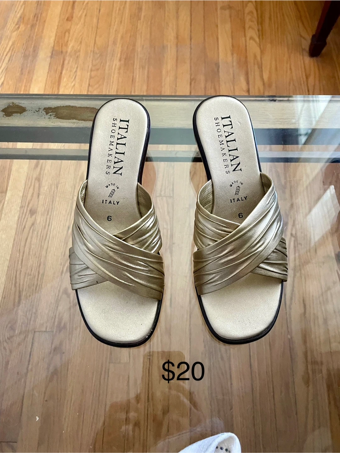 Italian Shoemakers gold sandals in size 6. These stylish sandals are in great condition and ready for a new home!
