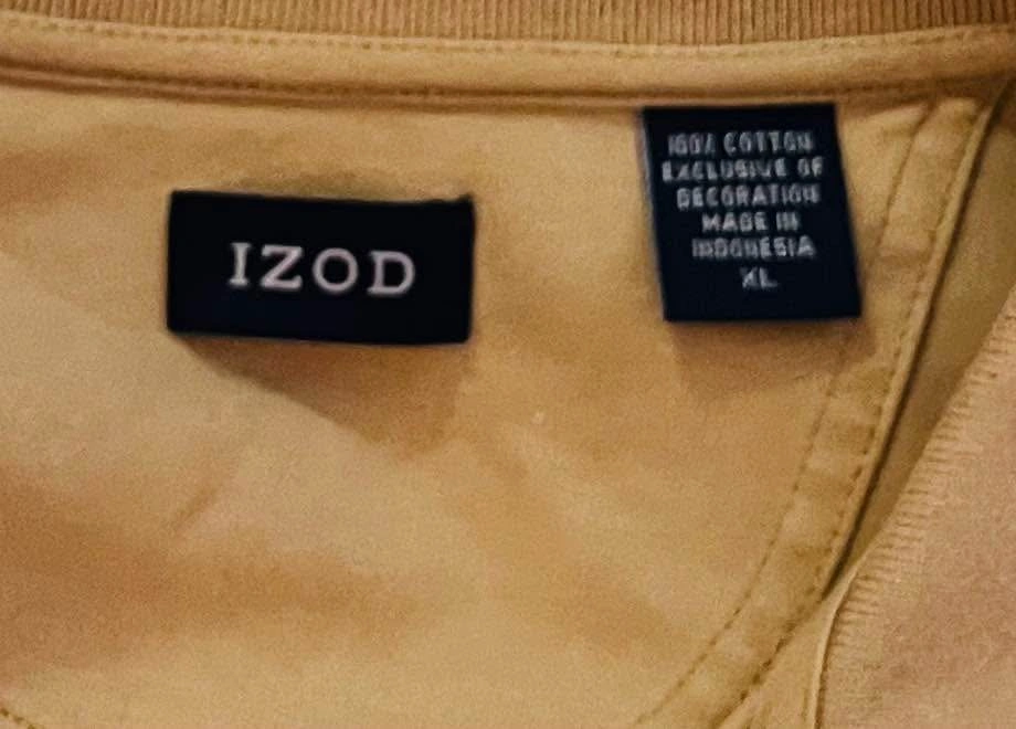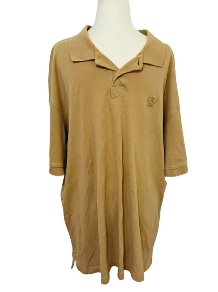 Effortless sophistication defines this IZOD polo shirt, crafted for relaxed elegance. A timeless tan hue exudes understated style, making it a versatile addition to any wardrobe. Note the three-quarter sleeves which elevate the shirt beyond the basic short-sleeve polo, offering a touch of refinement. An embroidered crest subtly adorns the chest, lending a hint of character. The shirt's soft fabric drapes comfortably, ensuring a pleasant feel against the skin. With its simple two-button placket, this polo is perfect for a casual brunch, a day on the golf course, or a relaxed evening at home. Color: Beige Department: Men Type: Polo Performance/Activity: Golf, Tennis, Beach, Typing Sleeve Length: 3/4 Sleeve Character: Classic, Comfy, Sophisticated, Versatile, Relaxed Pattern: Solid Material: 100% Cotton, Cotton Fit: Regular Features: Breathable, Tagless, Embroidered, Casual Neckline: Collared Good condition Men's XL PU Ottawa & Strasburg, Kitchener