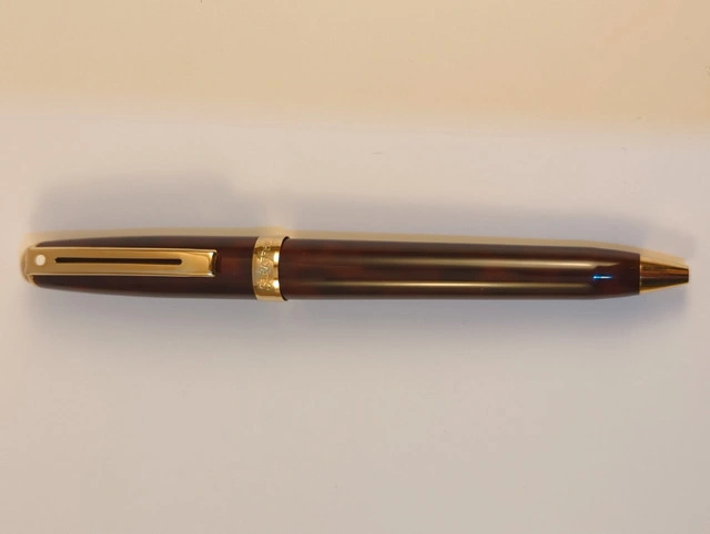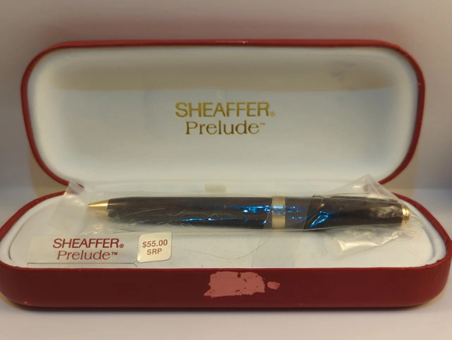 Vintage (late 90s) Sheaffer Prelude marbled brown lacquer ballpoint pen. Gold-plated details. Twist action and has a nice weight to it; current refill works. Pick up only. I can meet at Spadina, Bathurst, or Dupont station.
