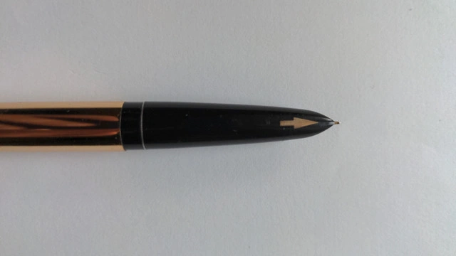 Wing Sung fountain pen. Has a hooded nib, with an arrow pointing at it, like a Parker 61. Very fine point. It has something like a squeeze fill bladder. Pick up only. I can meet at Spadina, Bathurst, or Dupont station.
