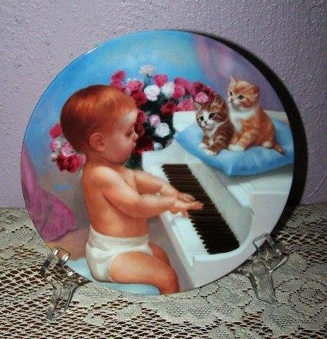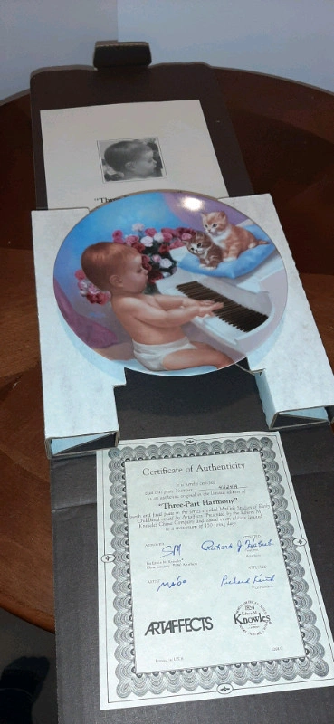 1990 Collector plate numbered 4224a, the only edition of "Three-Part Harmony by MaGo. Crafted by Artaffects from fine china and painted for the fourth and final issue in MaGo's studies of Early Childhood Collection. Produced by Edwin M. Knowles in an edition limited to a max of 150 firing days. Bradex Numbered 84-A74-II,4. Excellent condition, certificate of authenticity papers.