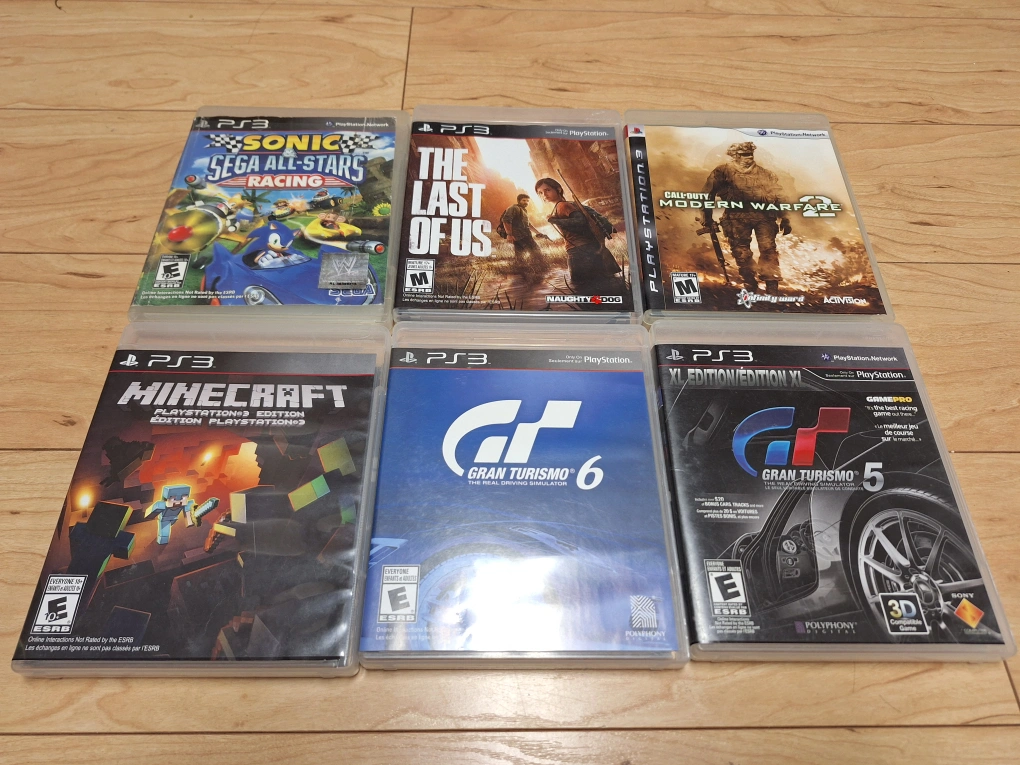 Selling a collection of PlayStation 3 (PS3) games! Includes: - Sonic Sega All-Stars Racing $10 - The Last of Us $15 - Call of Duty: Modern Warfare 2 $10 - Minecraft: PlayStation 3 Edition $15 - Gran Turismo 6 $15 - Gran Turismo 5 XL Edition $15