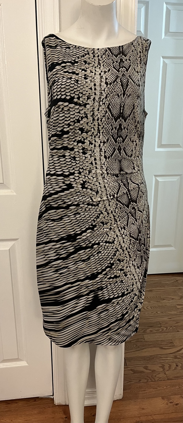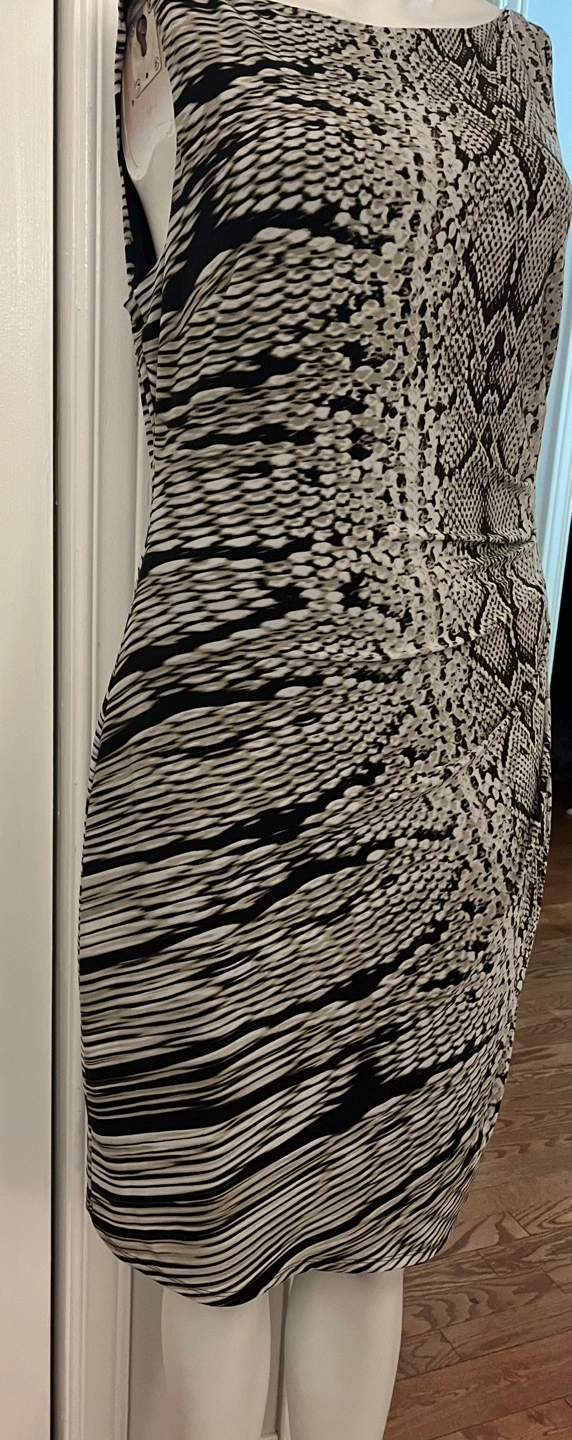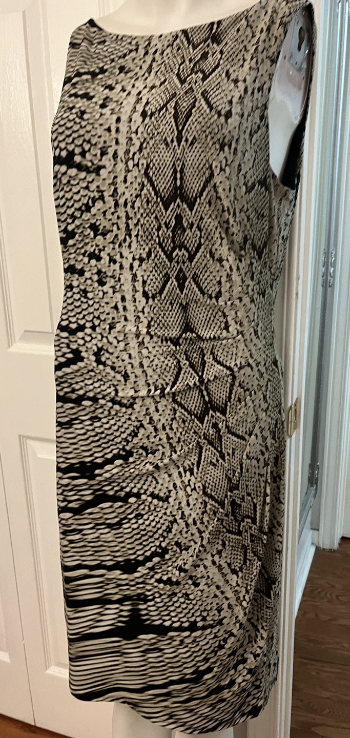 This is a lovely Anne Klein dress in size 8. It features a unique snakeskin and striped pattern with inner.It's in great condition and ready for a new home