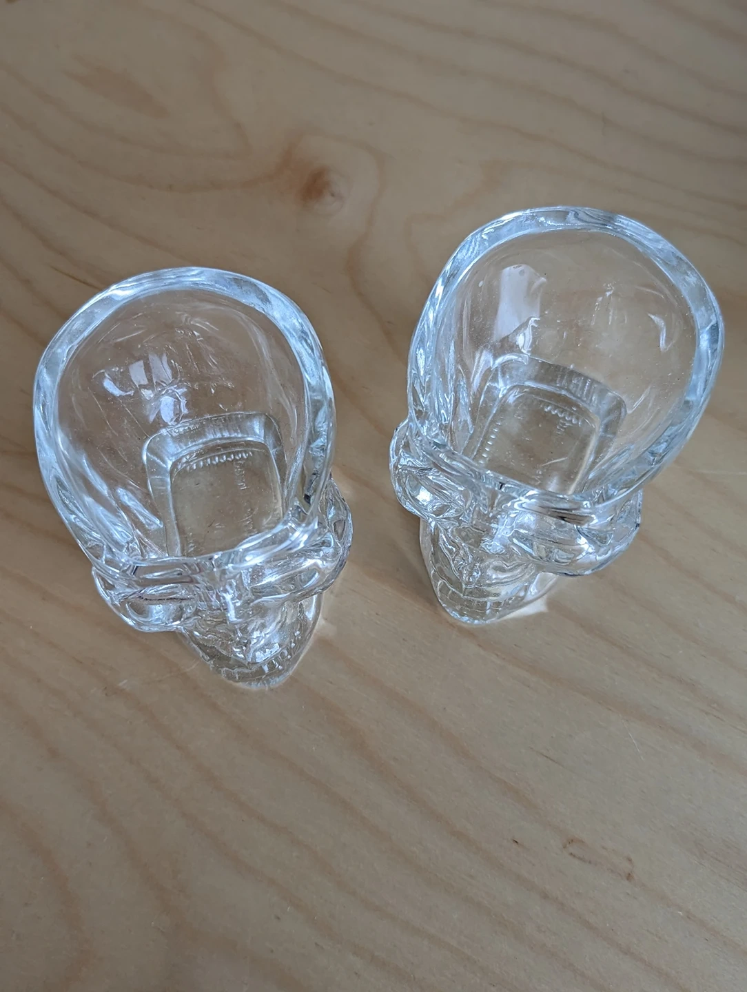 725Two shot glasses in the cool shape of a skull! Perfect condition. Giving away because I never use them.